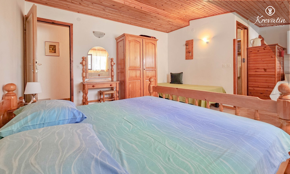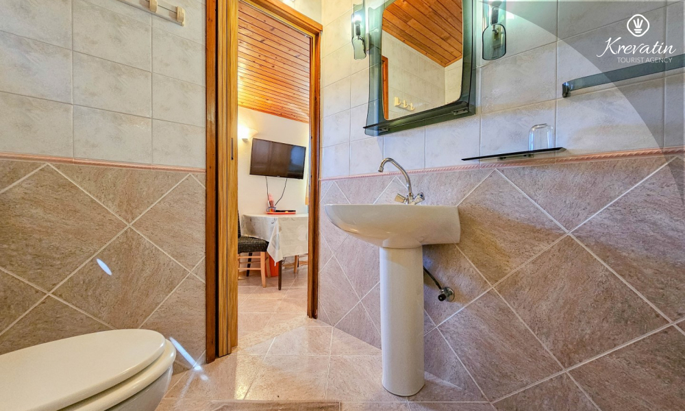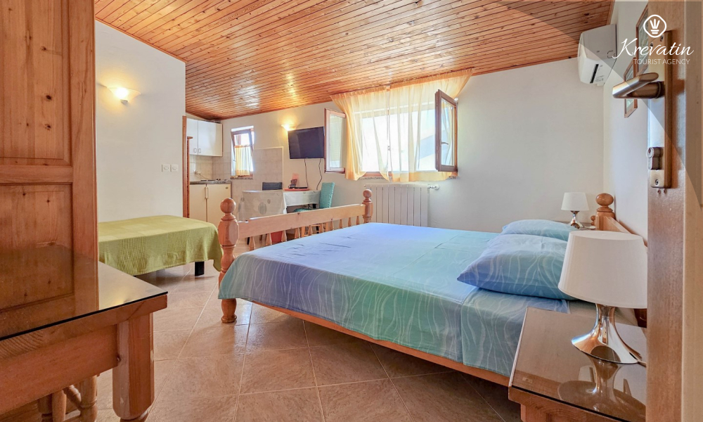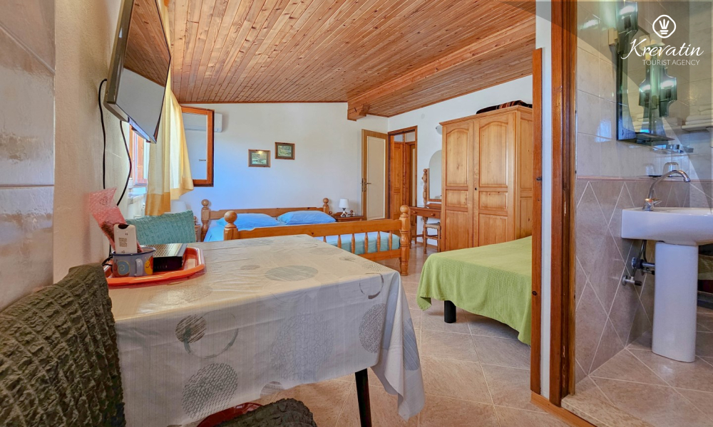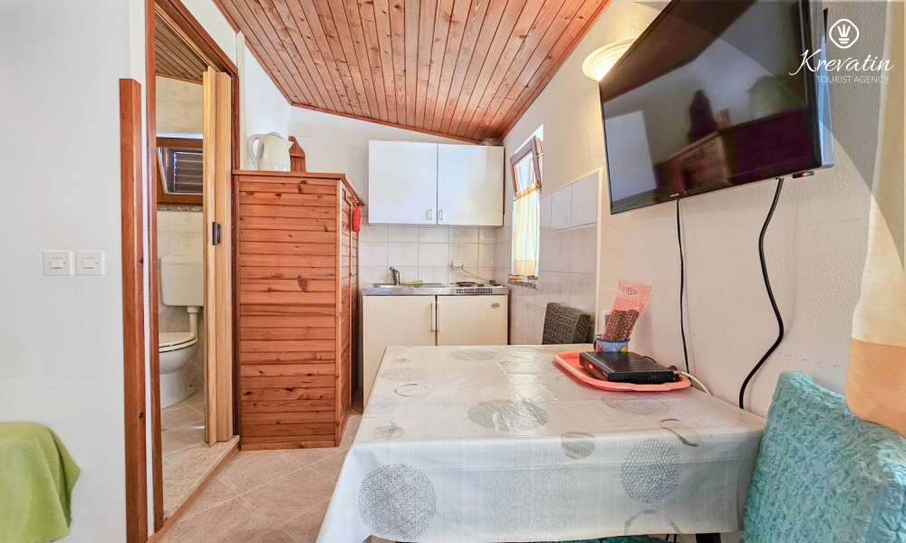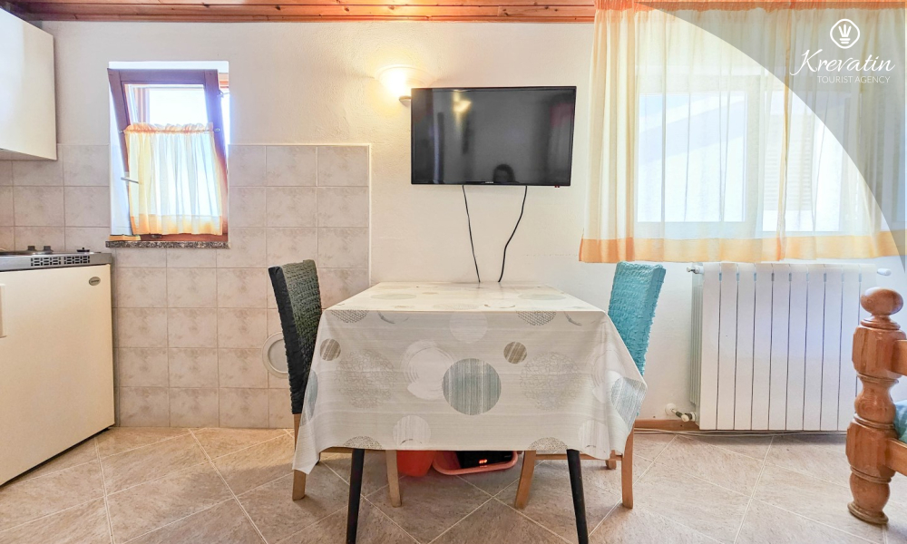 After exploring Novigrad, relax on the shared balcony overlooking the sea, where you can enjoy the fresh air and Mediterranean atmosphere. The studio also includes SAT-TV, WLAN, and bed linen and towels are provided so that you have everything you need for a pleasant stay.