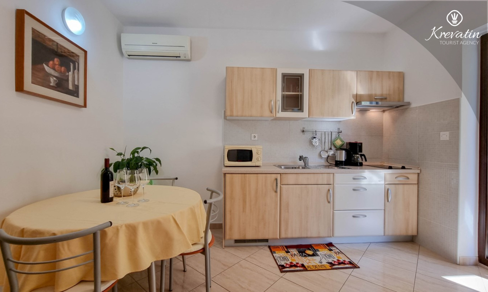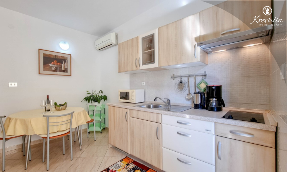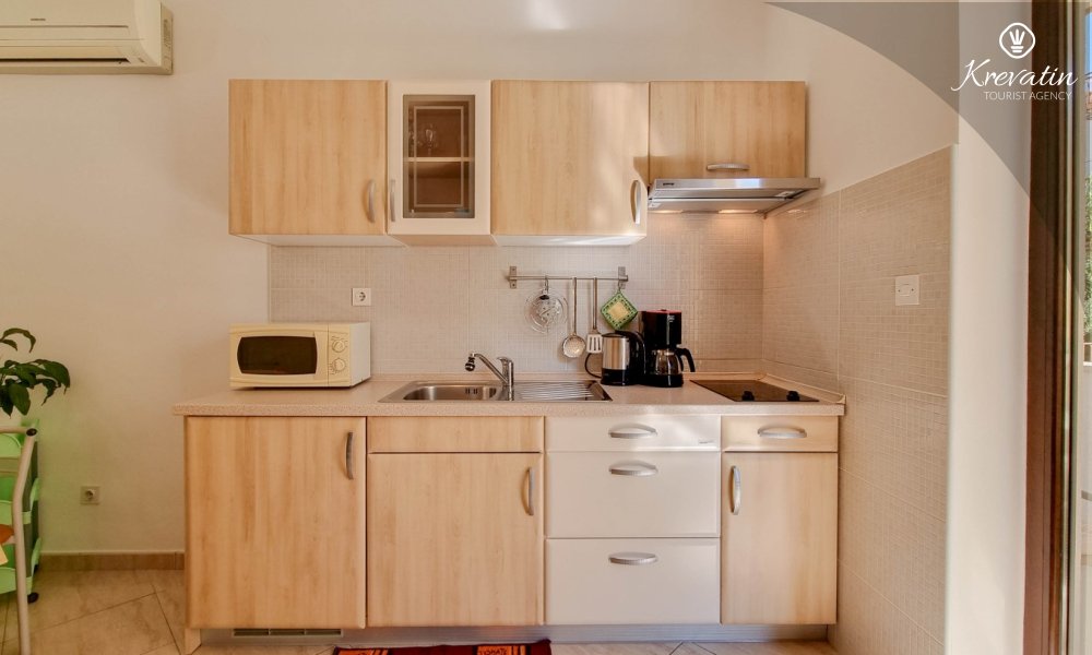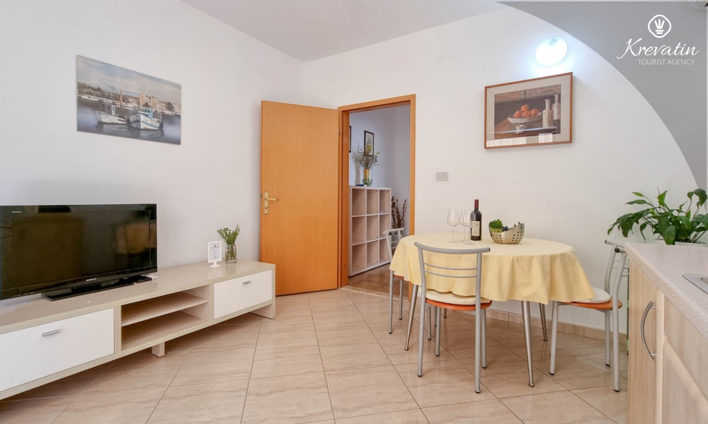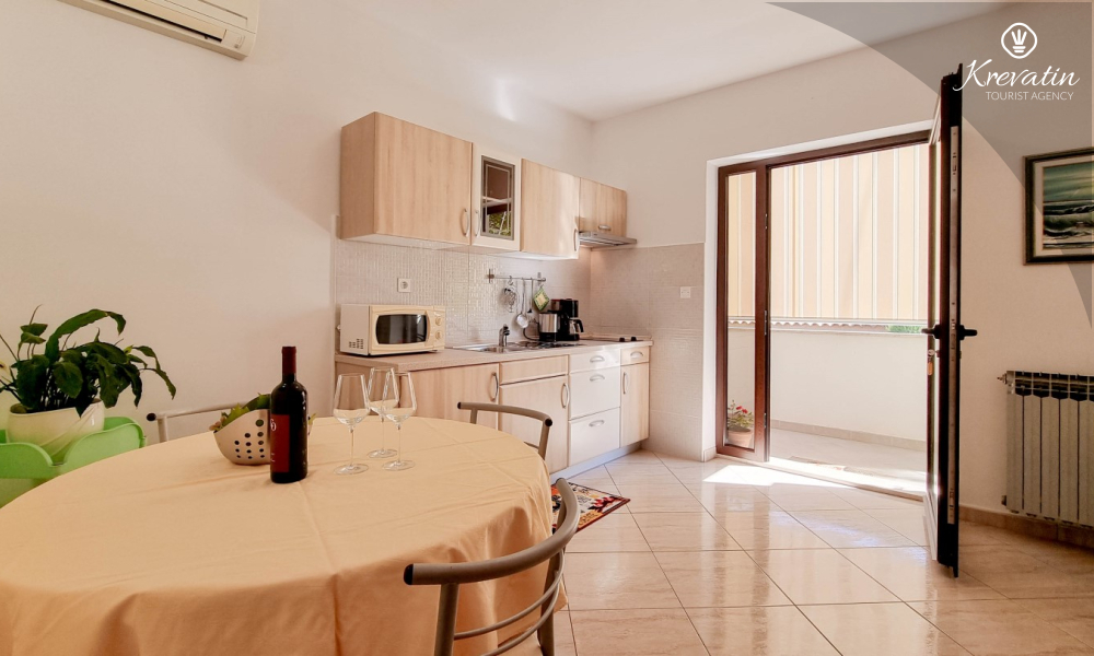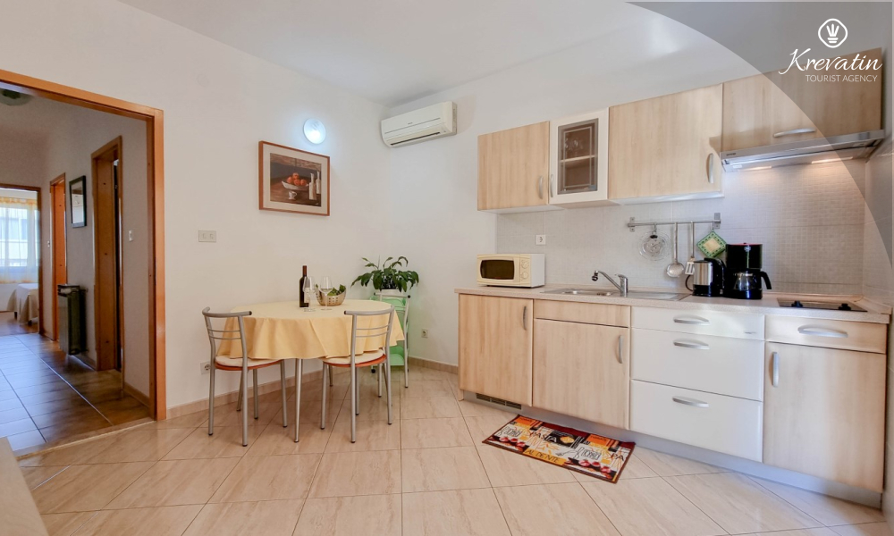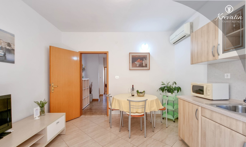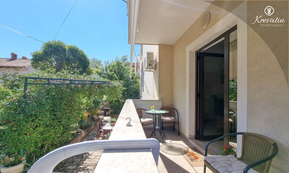 This apartment for up to 3 persons is situated on the ground floor and consists of two bedrooms and kitchen. The kitchen is equipped with electric stove, microwave, refrigerator and coffee maker. In addition there is a bathroom with bathtub and toilet and a nice terrace with furniture. SAT-TV, air condition, WLAN, bed linen and towels are included in the price, pets are not allowed.