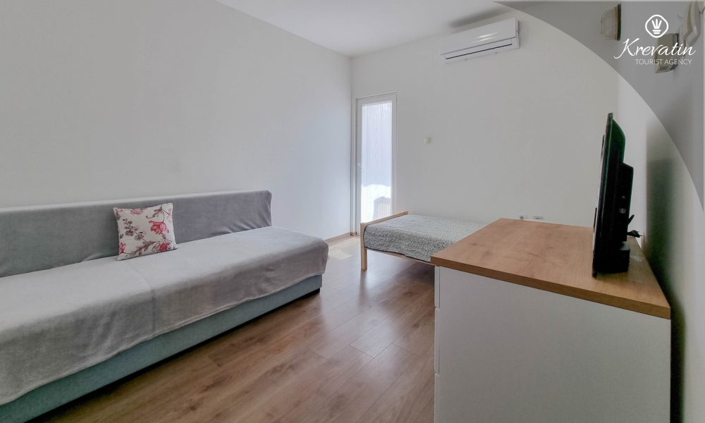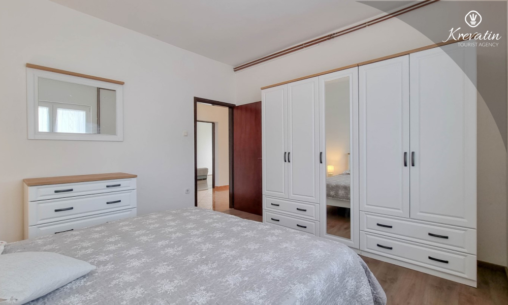 This apartment for 2 to 4 people is located on the upper ground floor and consists of one bedroom, a living room with a sofa bed and a single bed and a kitchen. The kitchen is equipped with an electric stove, oven, refrigerator and coffee machine. In addition, there is a bathroom with shower and toilet and a nice balcony with furniture. SAT-TV, WLAN, air conditioning, bed linen and towels are included in the price.