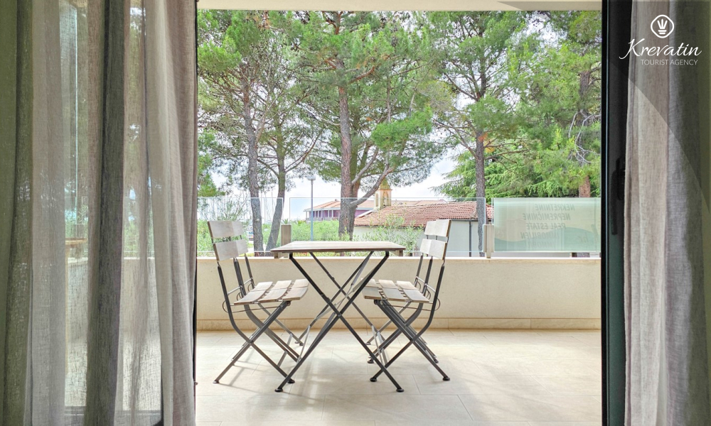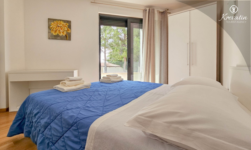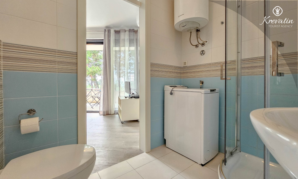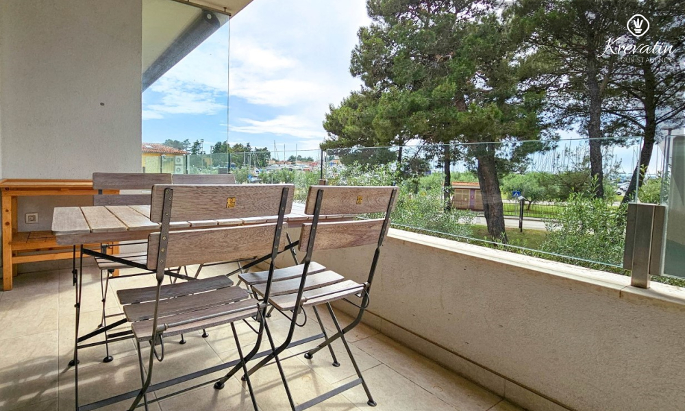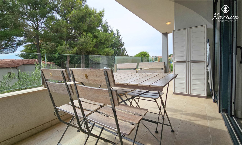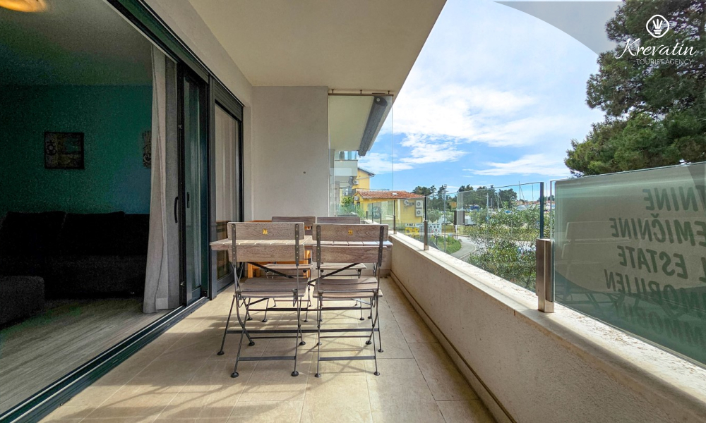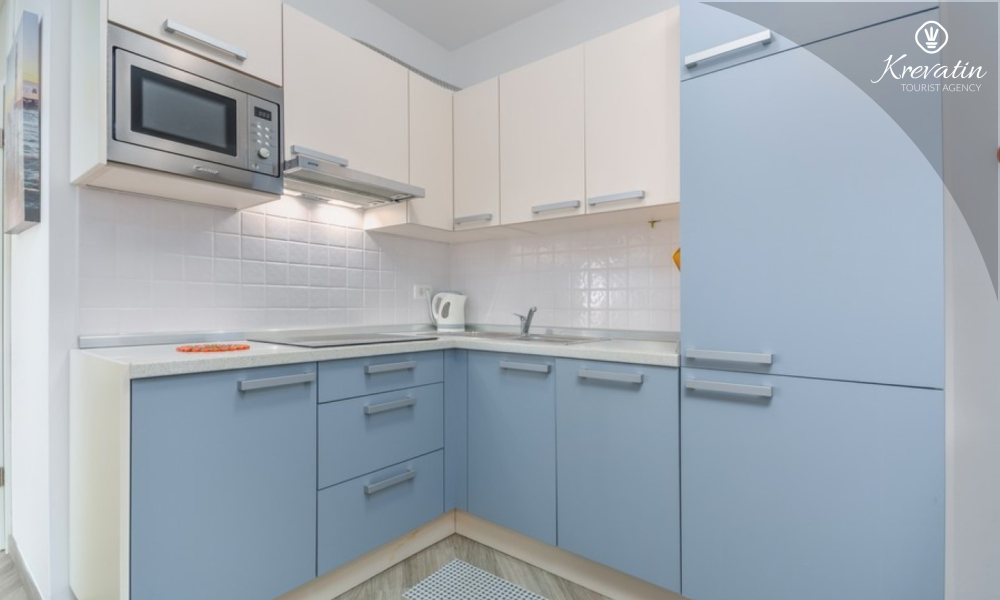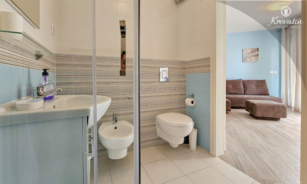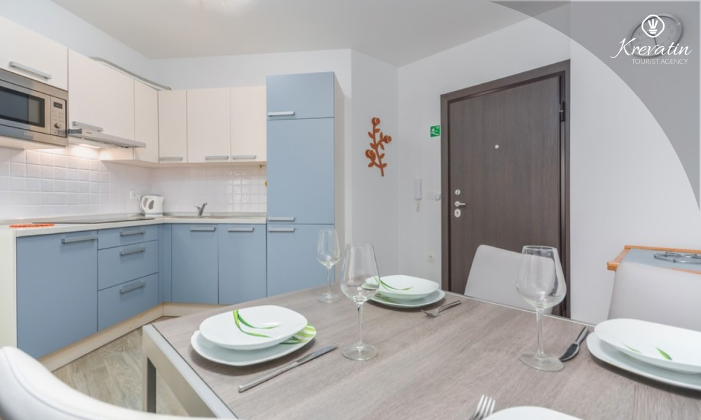 It consists of a bedroom with a double bed, a living room with a dining area and a kitchen equipped with basic items for preparing meals. There is a bed for two additional people in the living room, and there is also a bathroom with a shower and a toilet. The balcony with a beautiful view will provide pleasant moments outdoors.