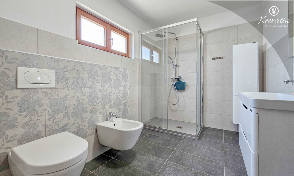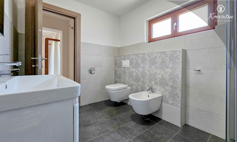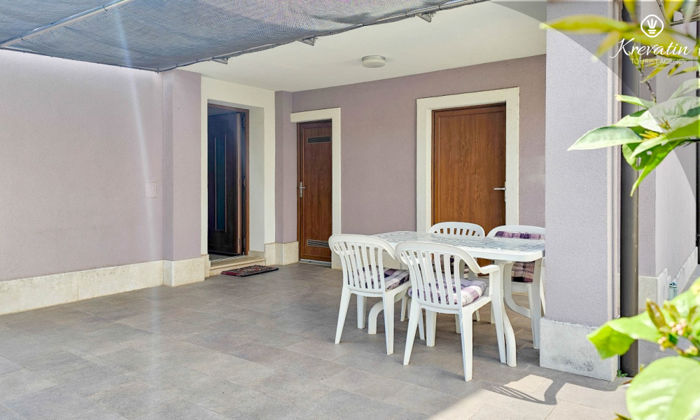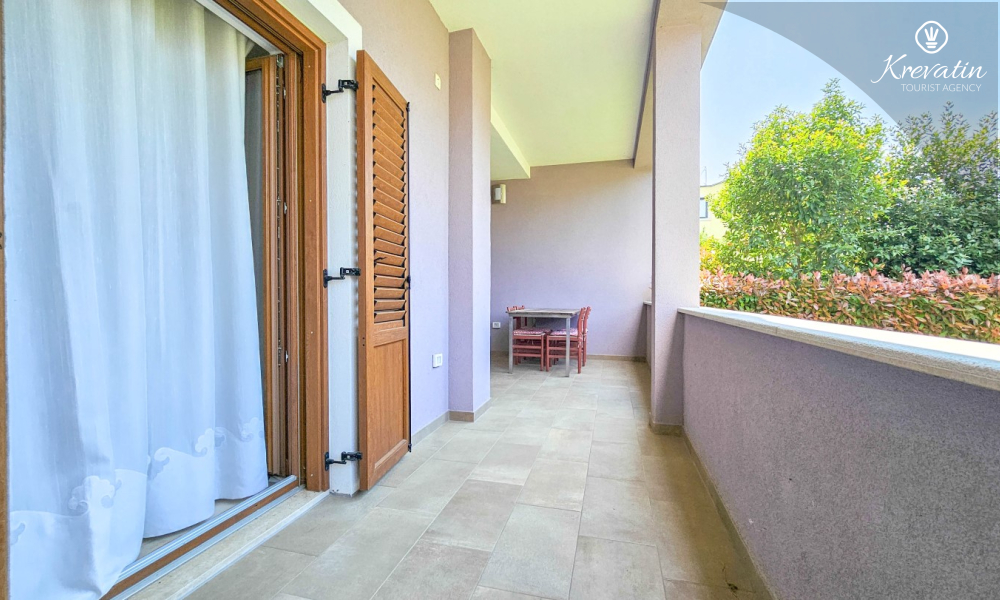 The apartment has one bedroom with a double bed, a private bathroom and access to the terrace — the perfect place to enjoy the outdoors. There is also a living room with a dining area and a well-equipped kitchen, and two additional people can comfortably sleep on an extra bed. There is also an additional bathroom with a toilet and a washbasin, and a terrace with a table and chairs. You can barbecue in the garden and enjoy the common area with guests from the other two apartments, ideal for socializing together.
