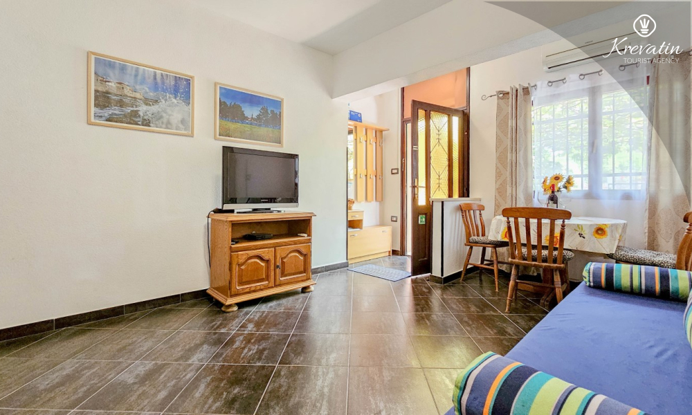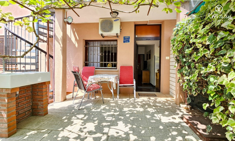 Located in a quiet part of Novigrad, this ground floor apartment offers the perfect combination of comfort and relaxation. It is ideal for couples and consists of a cozy bedroom, a practically equipped kitchen with a dining area and a bathroom with a shower. There is also a terrace for morning coffee or evening socializing with a glass of wine.