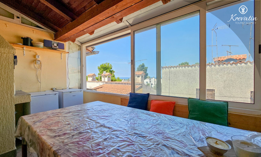 On the ground floor there is a well-equipped kitchen, a living room with a dining room where you can enjoy shared meals, and a practical bathroom with a shower, toilet and washing machine. On the first floor there is a comfortable bedroom with a double bed and an enclosed balcony, perfect for morning coffee or evening relaxation.