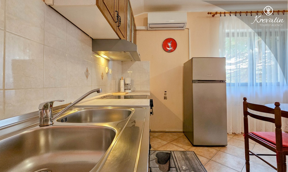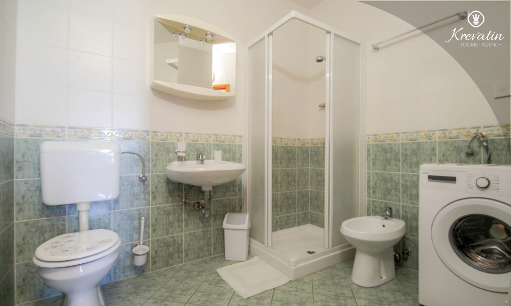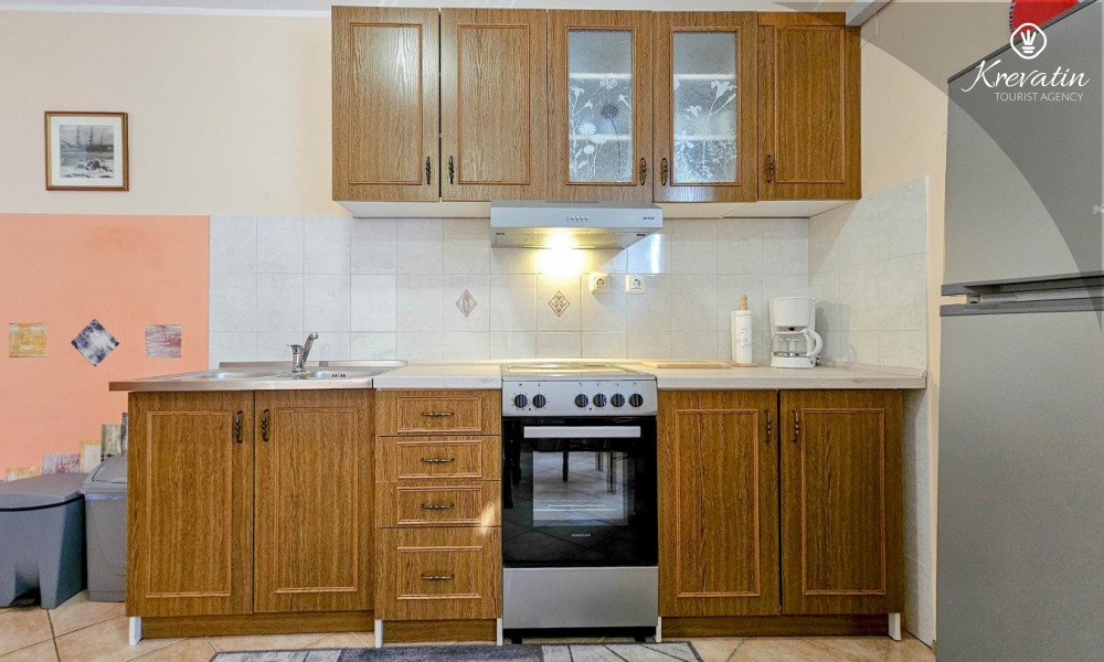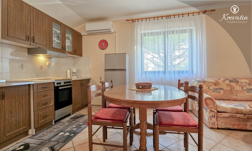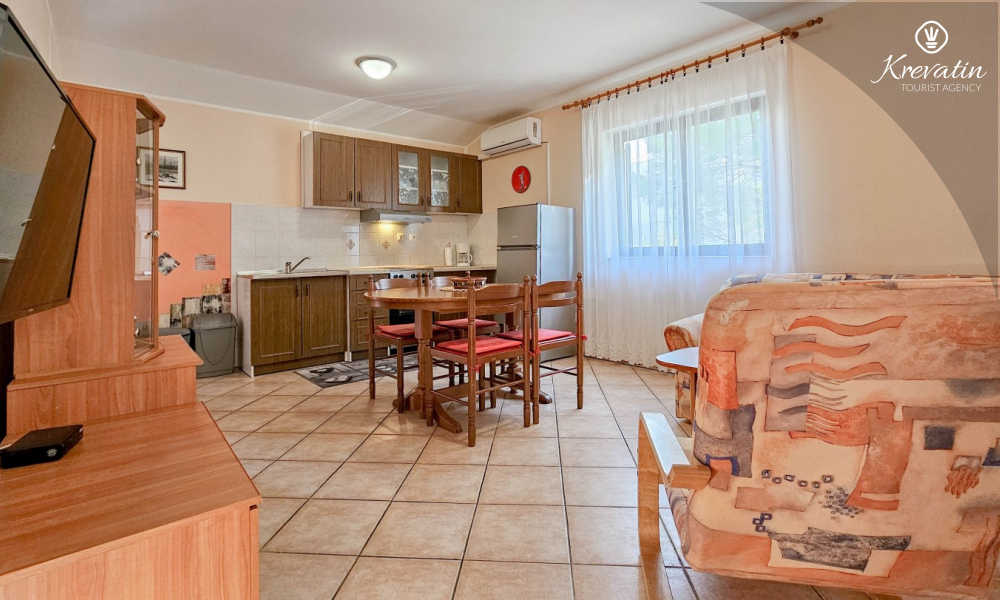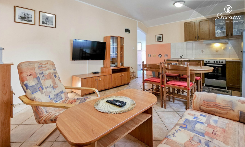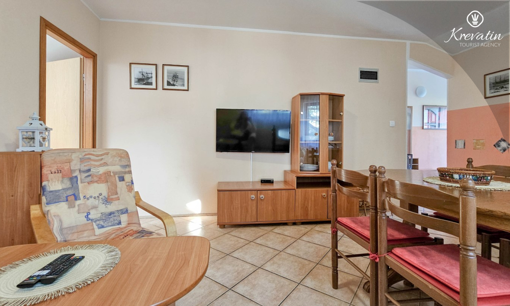 The apartment consists of two comfortable bedrooms, a living room and a functional kitchen equipped with basic items for preparing meals, and a bathroom with a shower and toilet. The apartment also has a balcony and a terrace in the garden, both for shared use, perfect for relaxing and socializing outdoors.