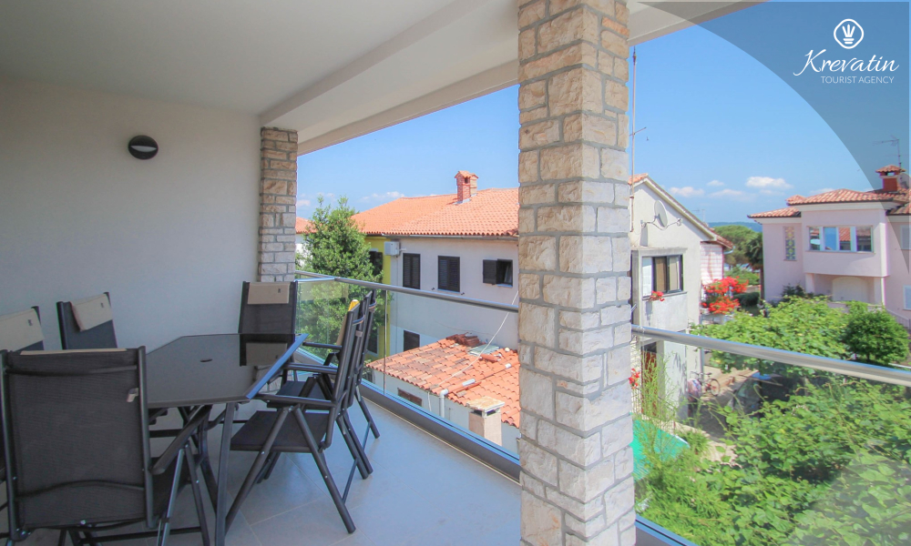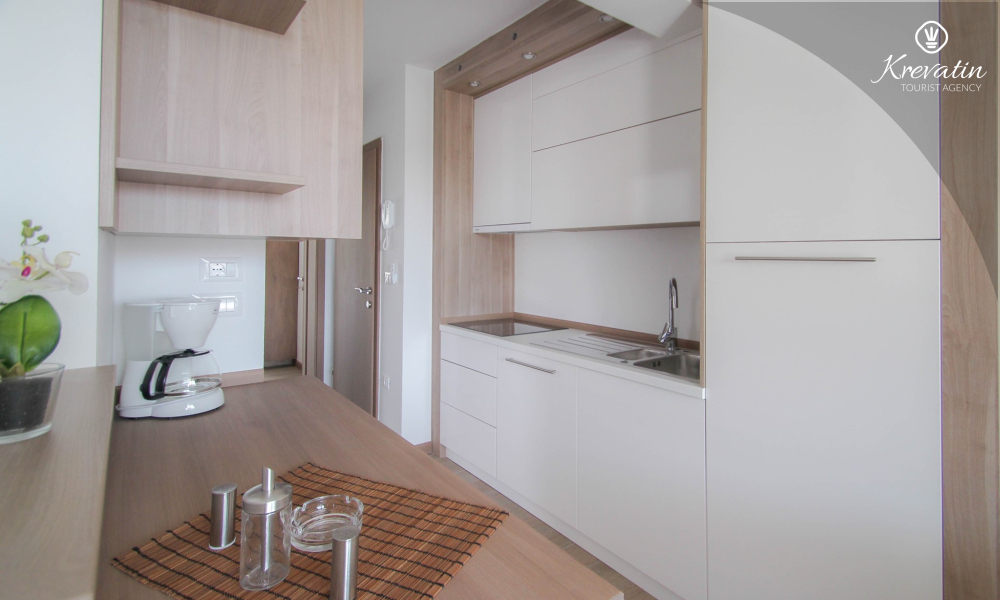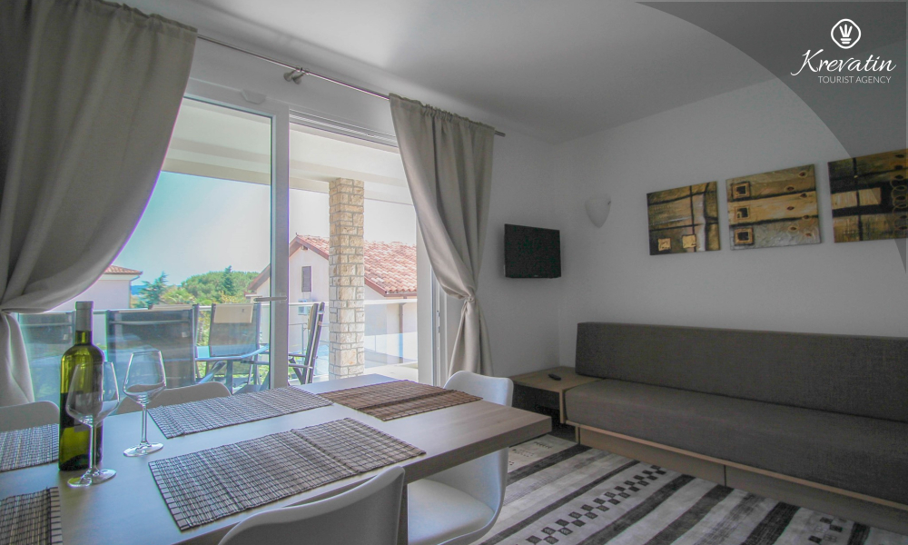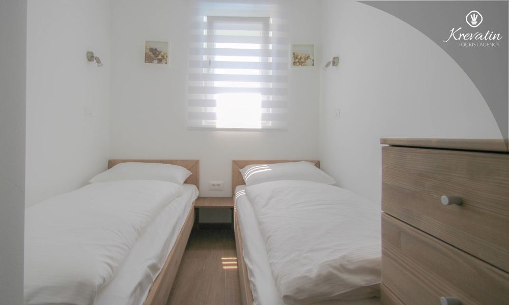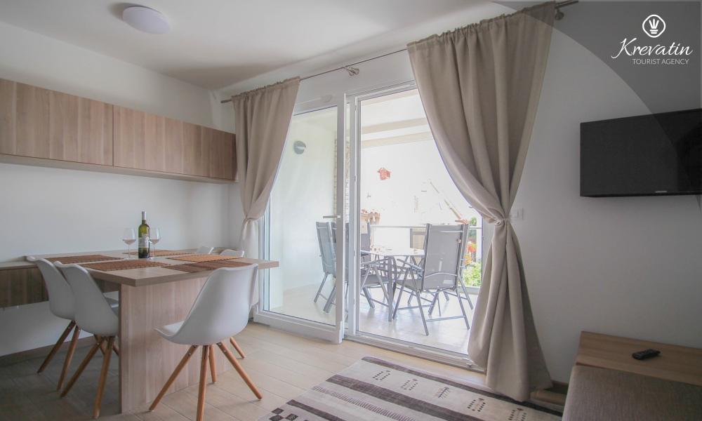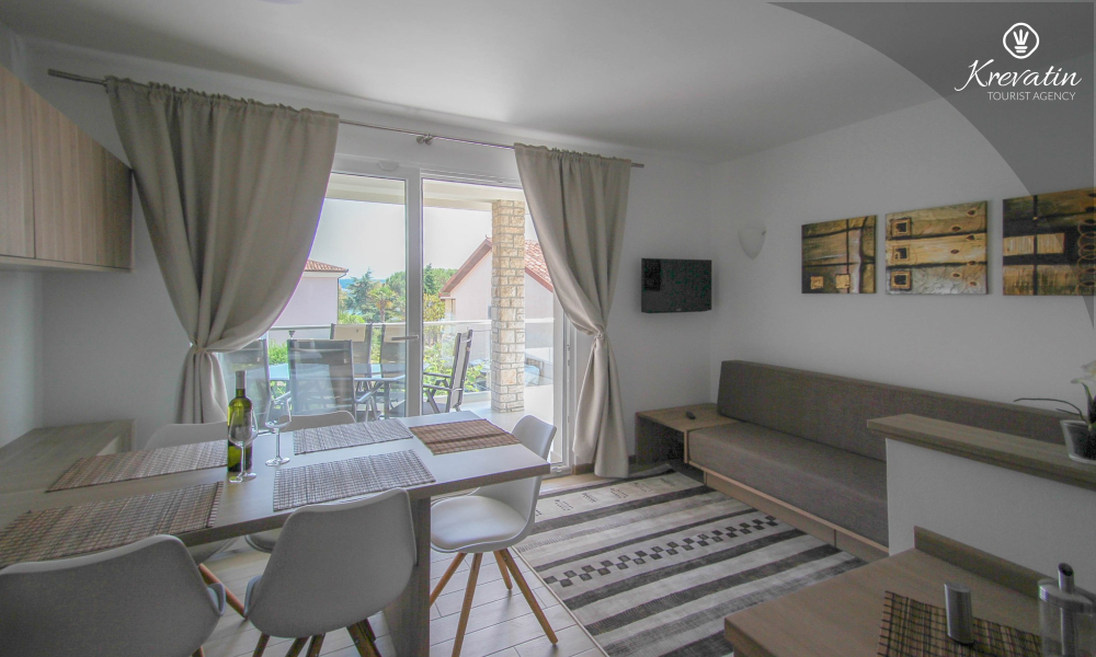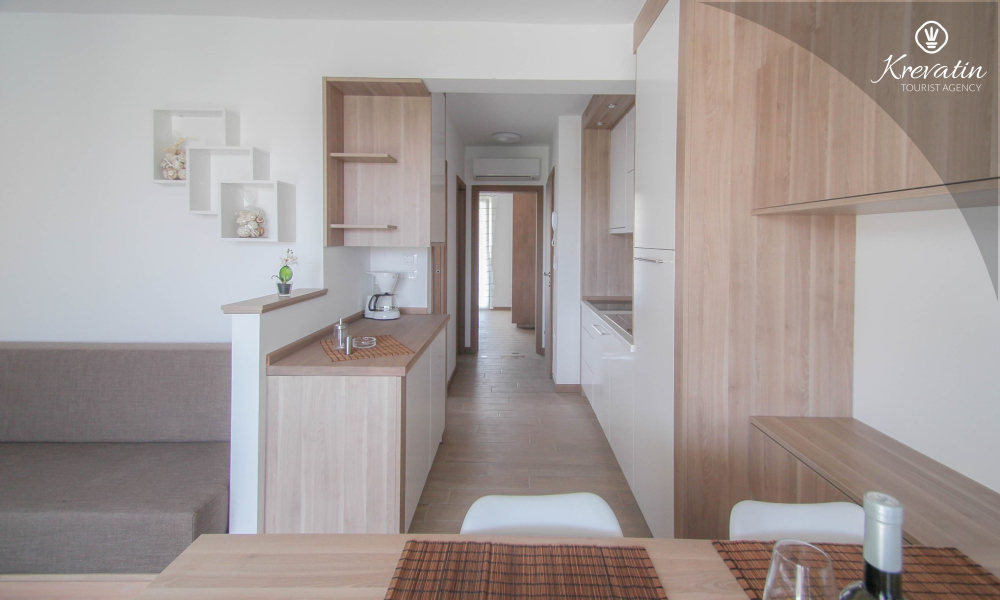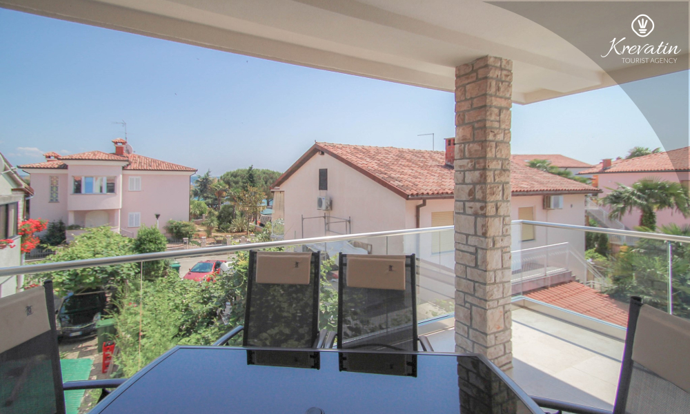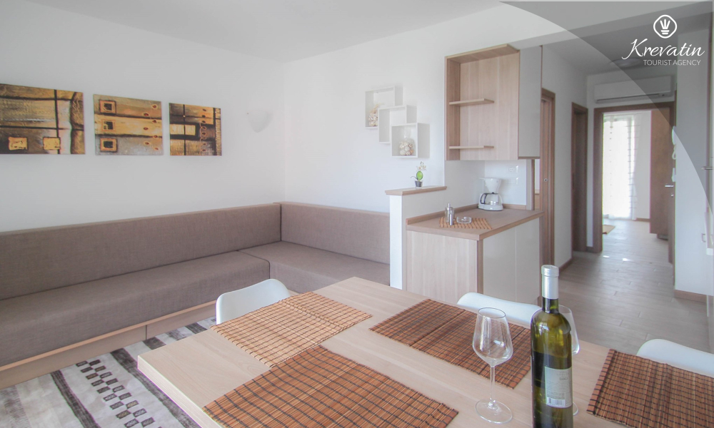 This apartment for up to 6 persons is situated on the first floor and consists of two bedrooms (one with double bed and one with two single beds) and a living room with one sofa bed and with kitchen. The kitchen is equipped with electric stove, refrigerator, dishwasher and coffee maker. In addition there is a bathroom with shower and toilet and a nice balcony with furniture.There is also a swimming pool for common use. SAT-TV, air condition, WiFi, bed linen and towels are included in the price, pets are welcome on charge.