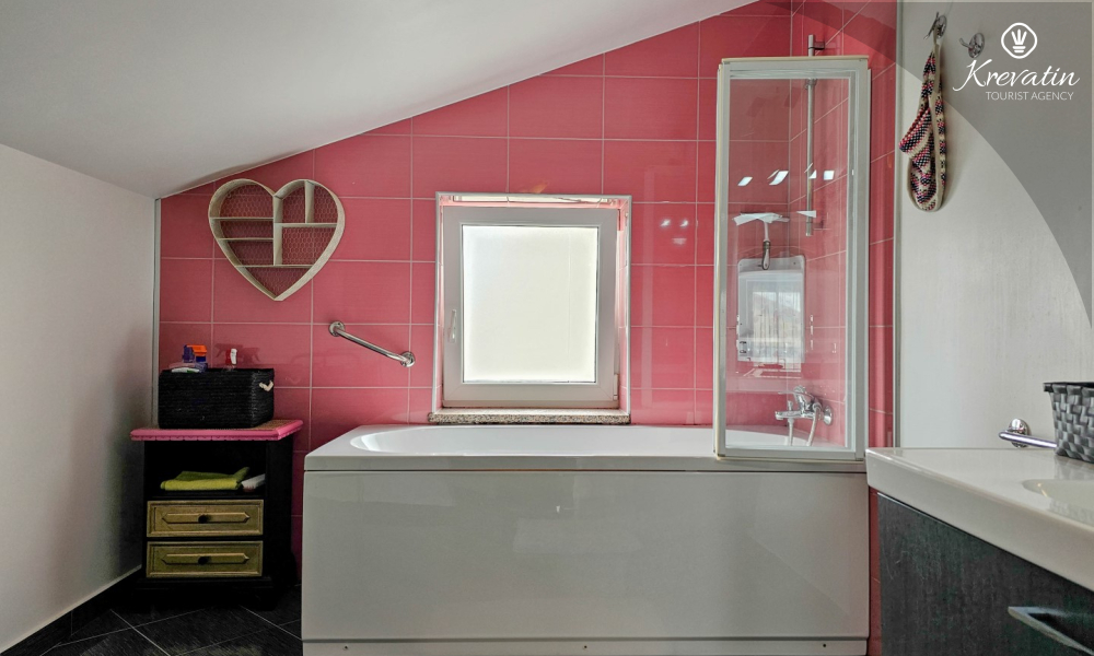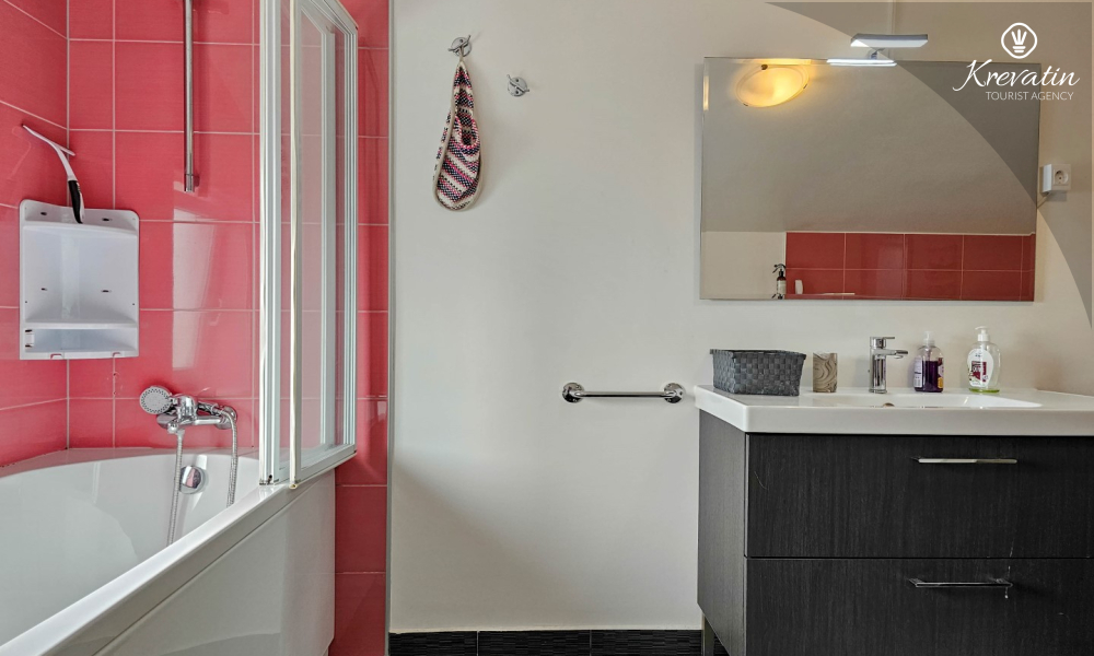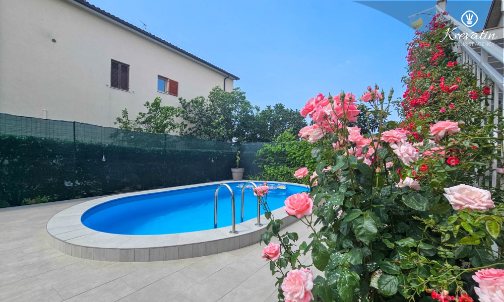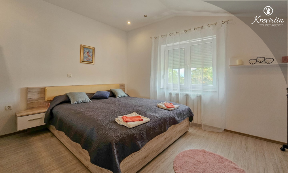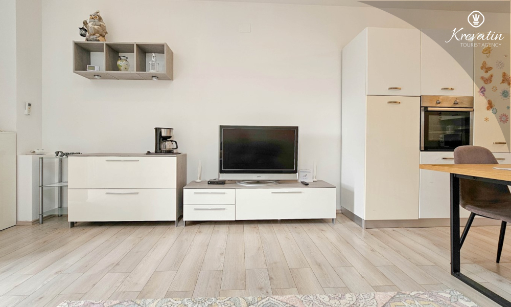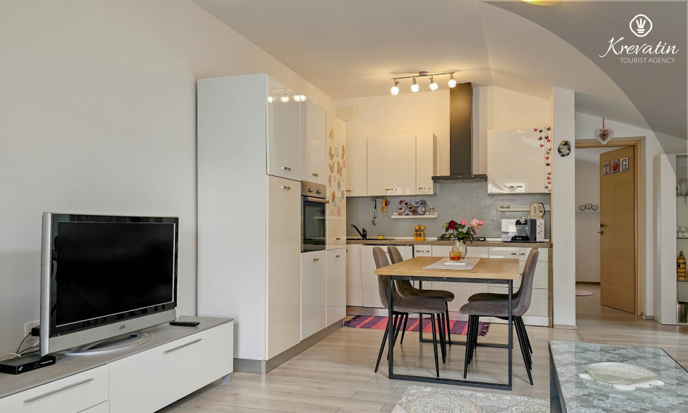 The apartment consists of two comfortable bedrooms, a spacious living room, a balcony with a beautiful view, and a modern kitchen equipped with all necessary appliances, including a gas/electric stove, oven, dishwasher, refrigerator, microwave oven, and coffee maker. In our fenced yard you will find a private swimming pool with deckchairs, an outdoor shower and a barbecue - the perfect place to enjoy sunny days and warm evenings.