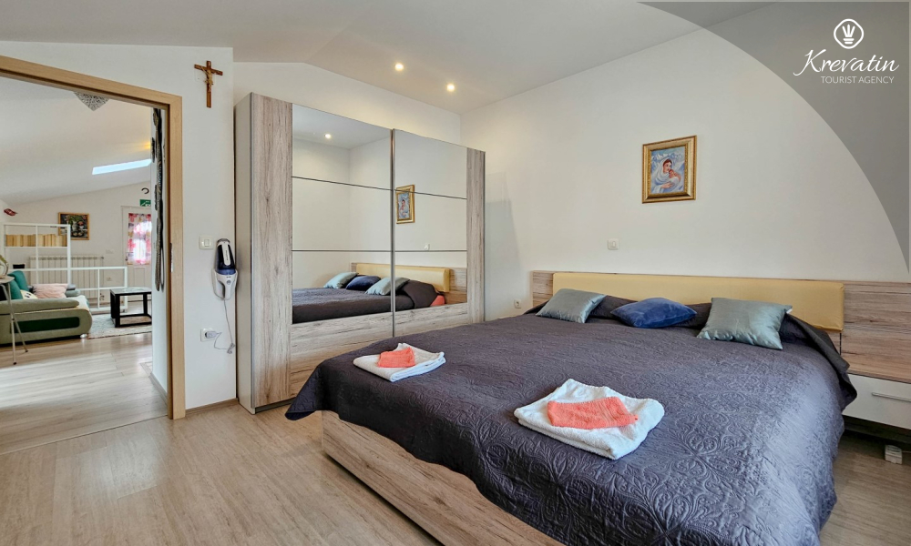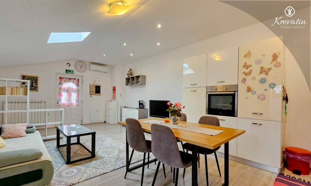 Welcome to our charming apartment in Juricani, an idyllic place near Umag, perfect for relaxing and enjoying the natural beauty of Istria. Located on the first floor of a family house, this spacious apartment can accommodate up to 5 people, providing ideal accommodation for families or small groups of friends.