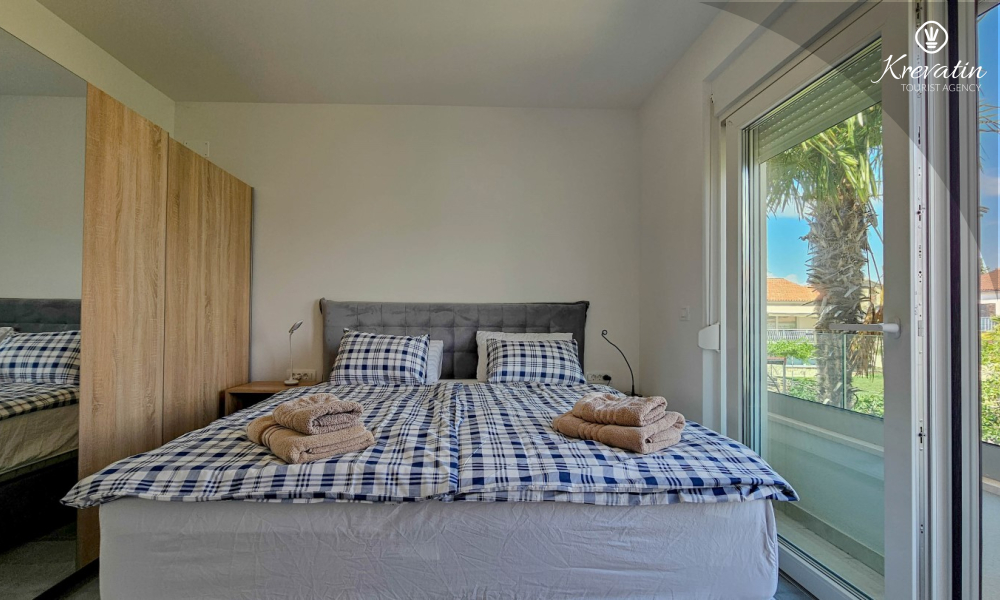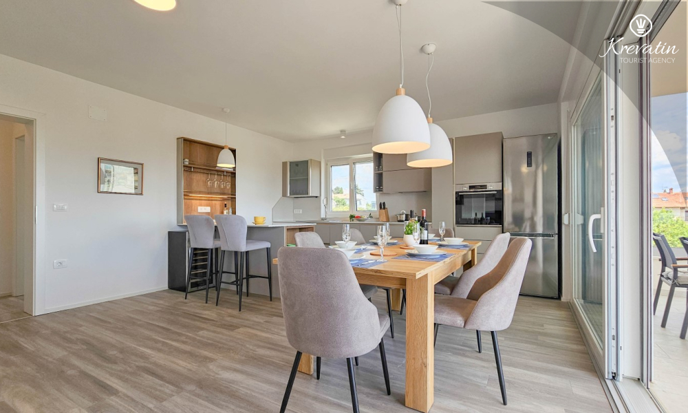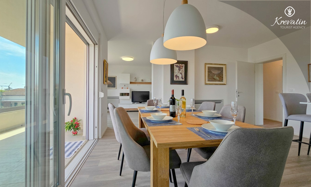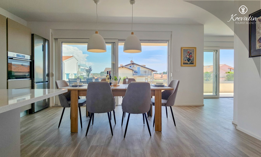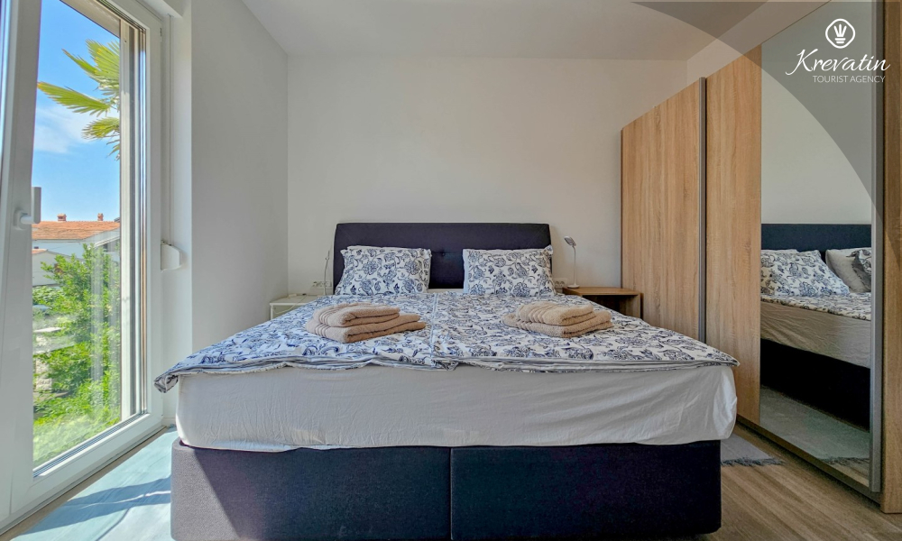 Discover comfort and contemporary style in our apartment located on the second floor of a house in Novigrad. Completely renovated, this apartment offers freshly decorated spaces with modern touches. It has two comfortable bedrooms with double beds and a sofa bed that provides additional sleeping for two more people. Enjoy a beautifully decorated living room and a fully equipped kitchen that will satisfy all your needs. In terms of comfort and convenience, the apartment has two bathrooms to ensure privacy and convenience for all guests. Our balcony with comfortable seating gives you the opportunity to enjoy the fresh air and enjoy the view of the surroundings. Welcome to our apartment in Novigrad, the ideal choice for a relaxing and comfortable stay. Note: in the period from 01.10. until 01.04. this apartment can be booked for a longer (monthly) period at a special price. Contact us for more information.