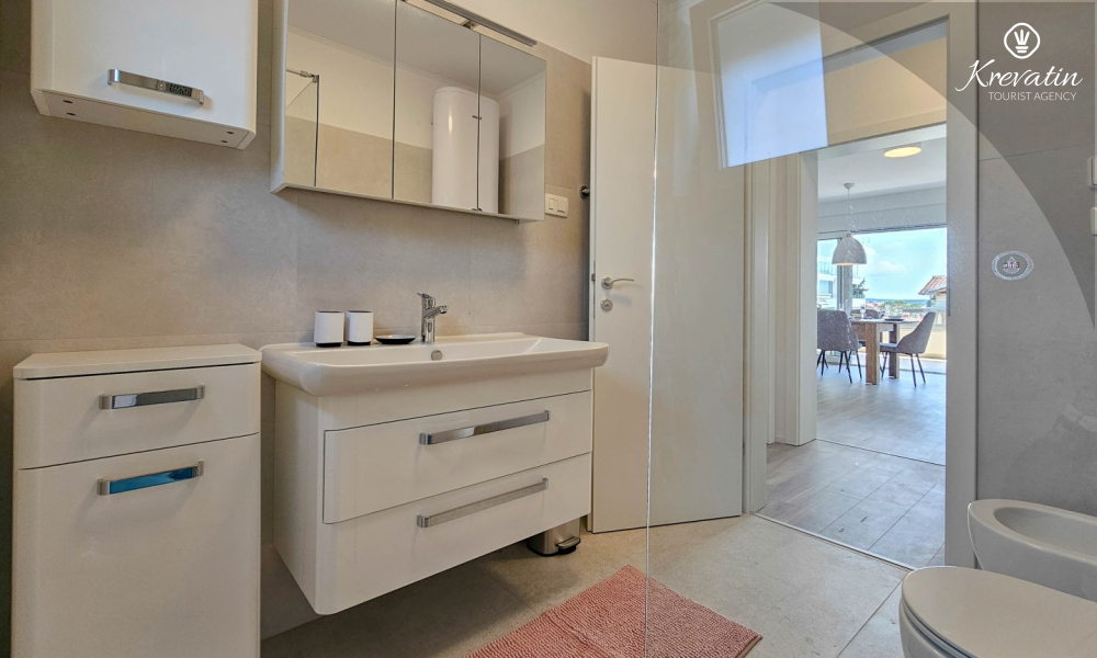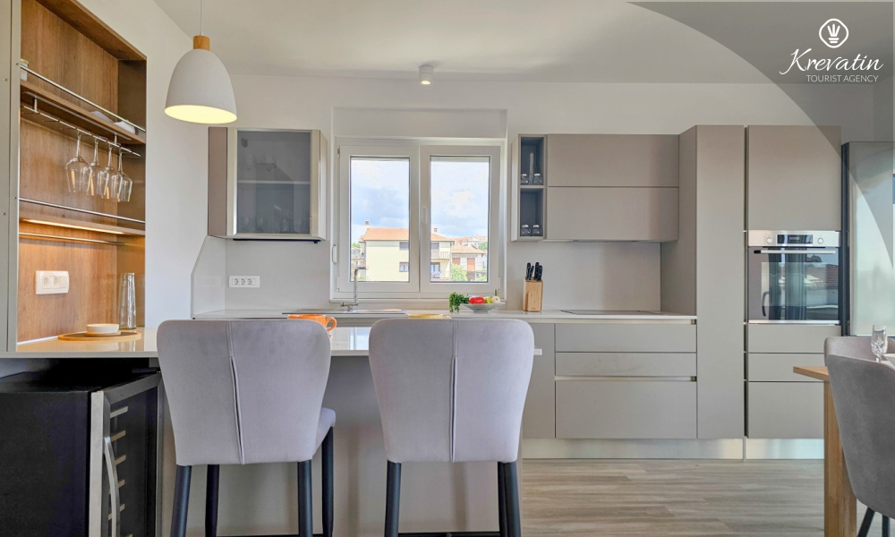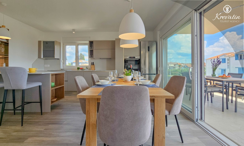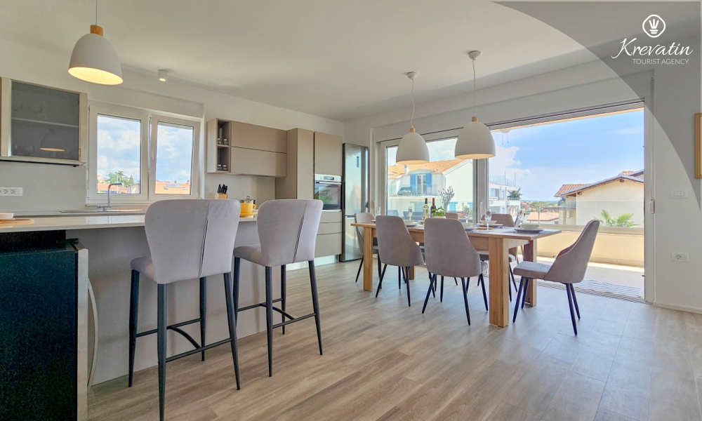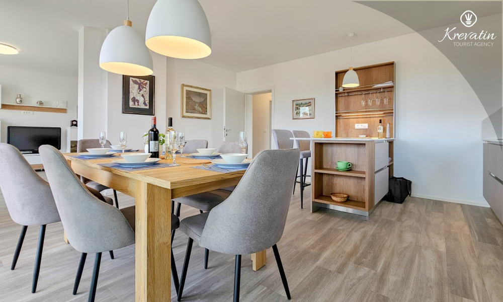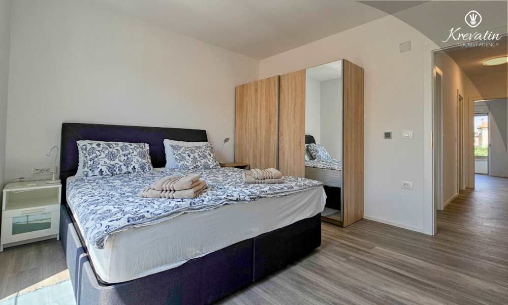 Discover comfort and contemporary style in our apartment located on the second floor of a house in Novigrad. Completely renovated, this apartment offers freshly decorated spaces with modern touches. It has two comfortable bedrooms with double beds and a sofa bed that provides additional sleeping for two more people. Enjoy a beautifully decorated living room and a fully equipped kitchen that will satisfy all your needs. In terms of comfort and convenience, the apartment has two bathrooms to ensure privacy and convenience for all guests. Our balcony with comfortable seating gives you the opportunity to enjoy the fresh air and enjoy the view of the surroundings. Welcome to our apartment in Novigrad, the ideal choice for a relaxing and comfortable stay. Note: in the period from 01.10. until 01.04. this apartment can be booked for a longer (monthly) period at a special price. Contact us for more information.