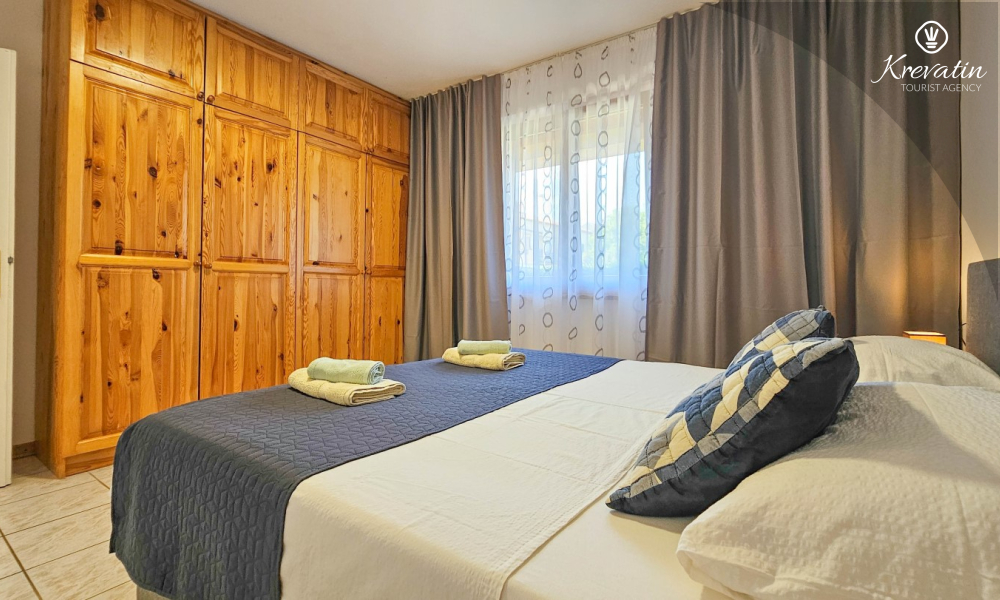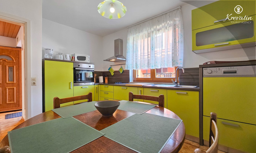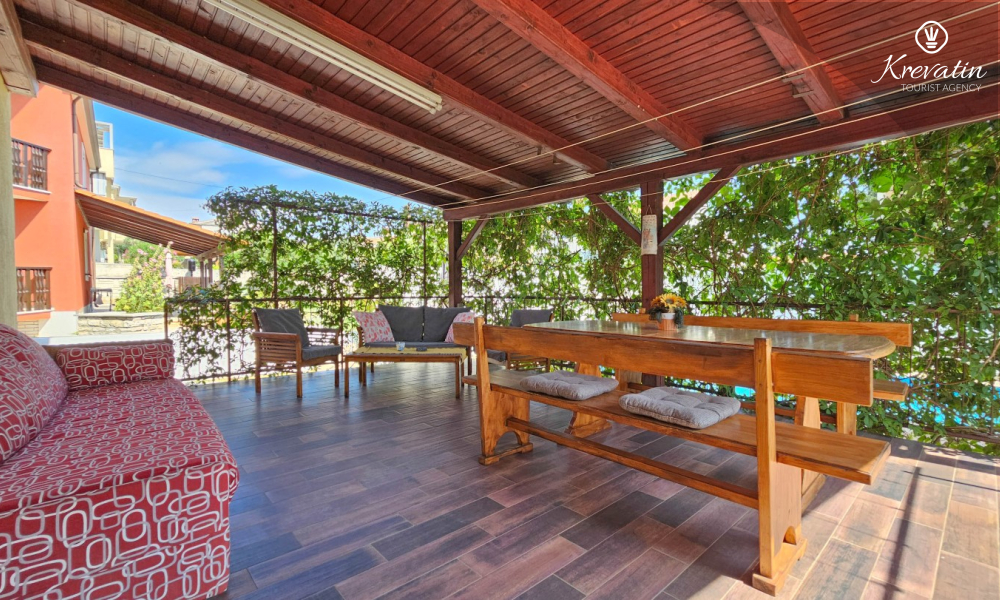 The apartment has 2 comfortable bedrooms, a spacious living room and a kitchen with a dining room. The kitchen is equipped with all the basics, making it easy to prepare meals from fresh local ingredients. The bathroom is equipped with a shower cabin, bathtub and toilet for extra comfort. A spacious terrace with a table and chairs will provide you with relaxing moments with morning coffee or evening gatherings.