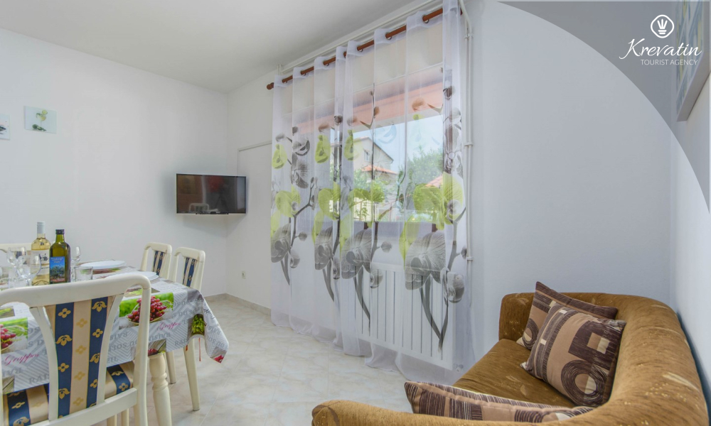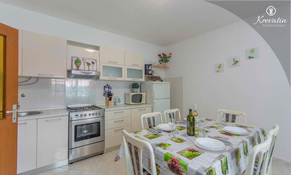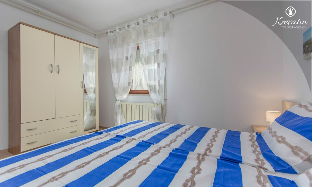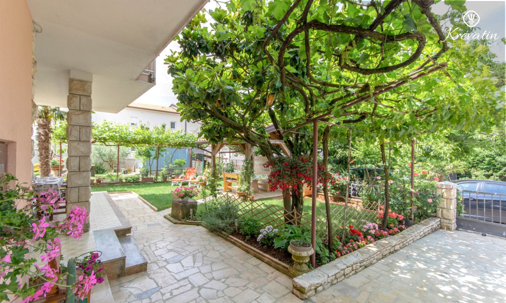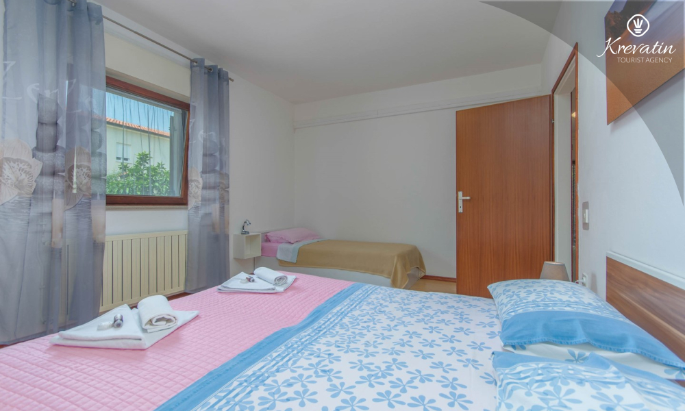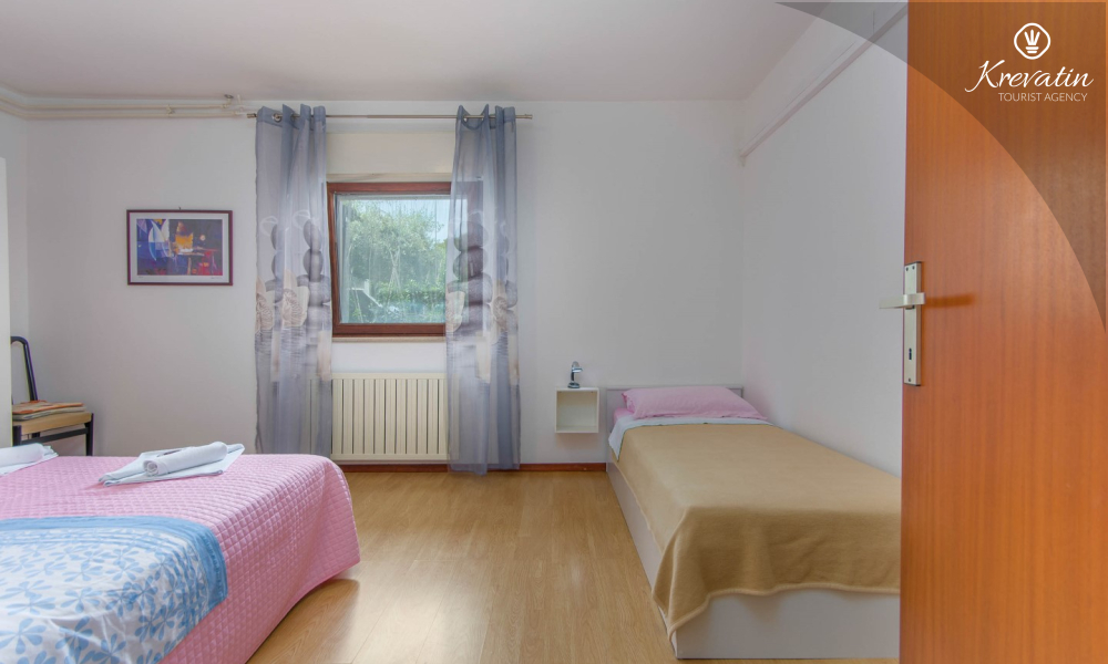 The apartment is for 4 to 5 people and is located on the ground floor of a family house. It consists of two bedrooms, a kitchen equipped with basic amenities, a bathroom with shower and toilet, and a terrace overlooking the garden - ideal for morning coffee or evening relaxation.