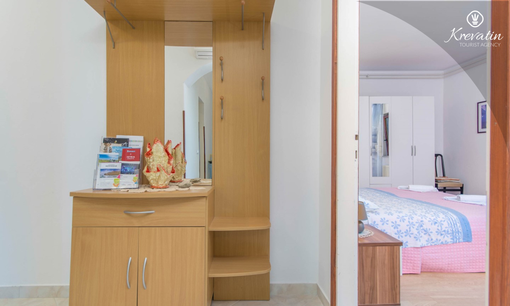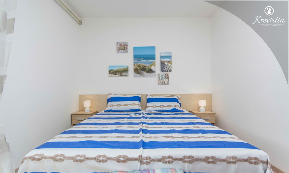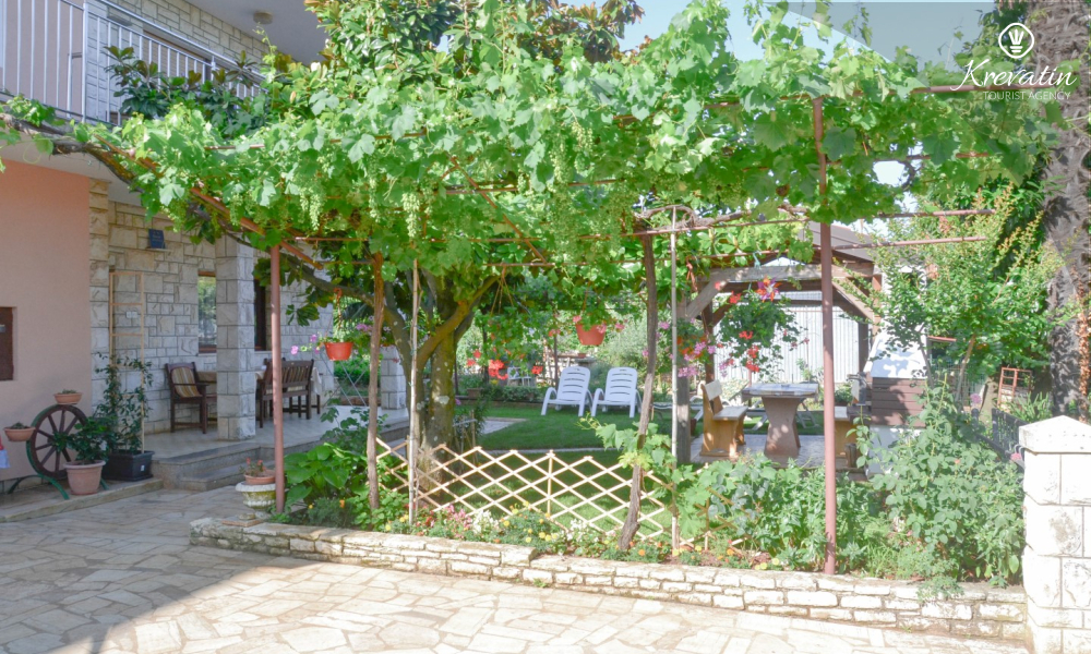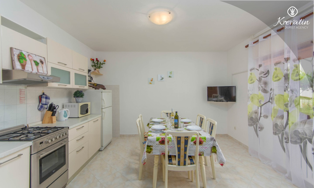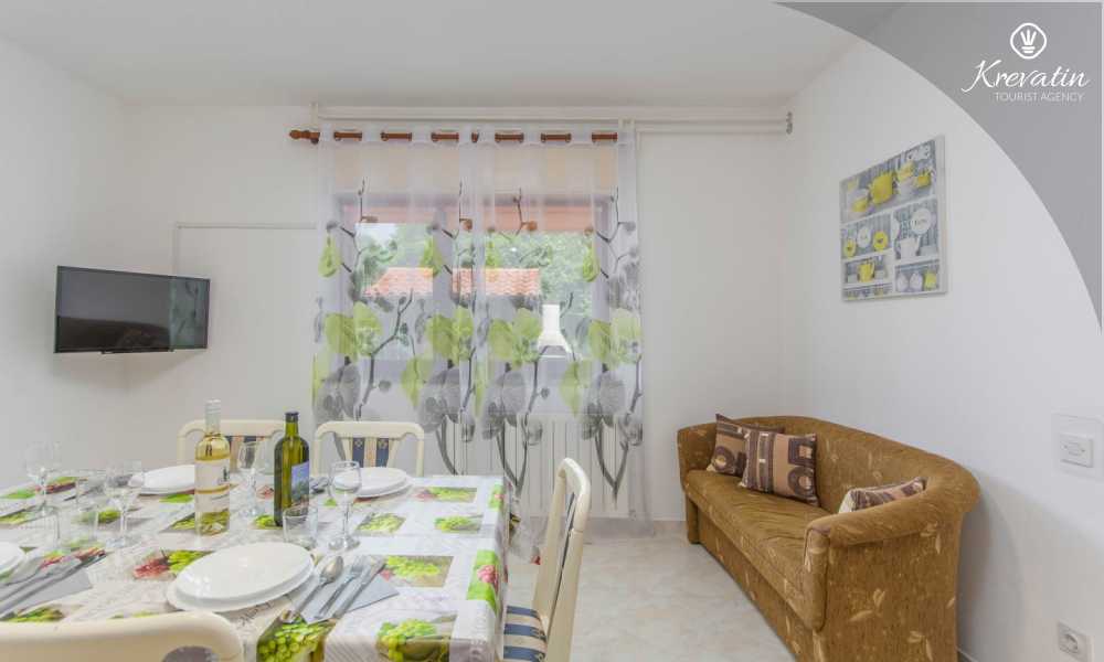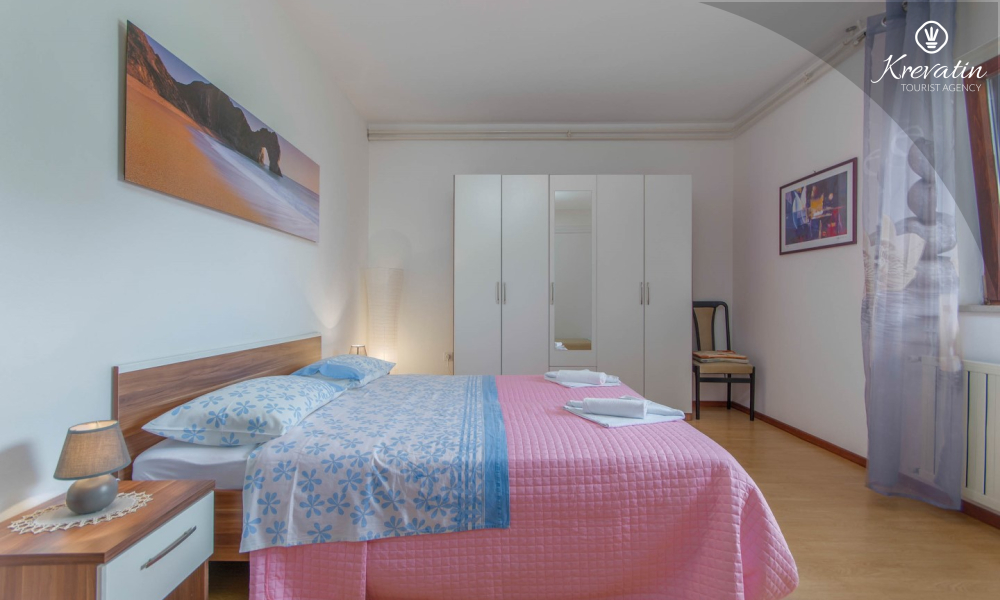 The apartment is for 4 to 5 people and is located on the ground floor of a family house. It consists of two bedrooms, a kitchen equipped with basic amenities, a bathroom with shower and toilet, and a terrace overlooking the garden - ideal for morning coffee or evening relaxation.