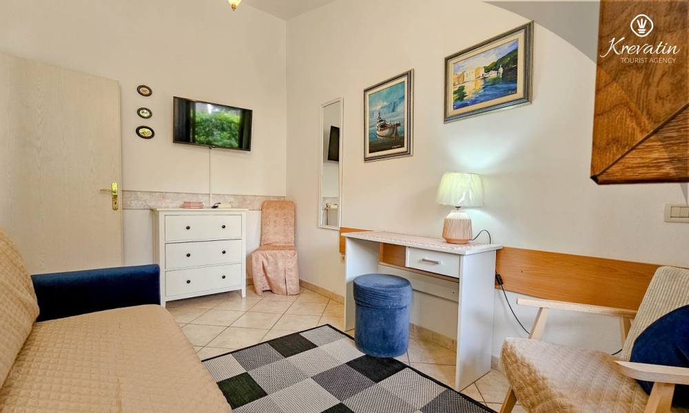 Located in the very center of charming Novigrad, our apartment for up to 3 people is an ideal choice for couples, families or small groups of friends. It is located on the ground floor of a family house, just 80 meters from the first beach.