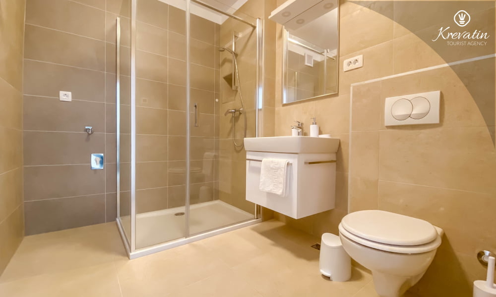 The apartment consists of two bedrooms, a living room and a kitchen with a dining area, equipped with everything you need for a carefree stay. There are two bathrooms with a shower and a toilet, which ensures additional comfort for guests.