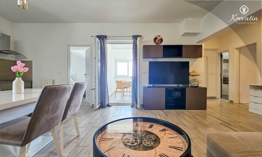 This beautifully furnished apartment, located on the second floor of an apartment house in a quiet part of Novigrad, is an ideal choice for a family or a group of up to 4 people looking to enjoy the charm of the Istrian coast.