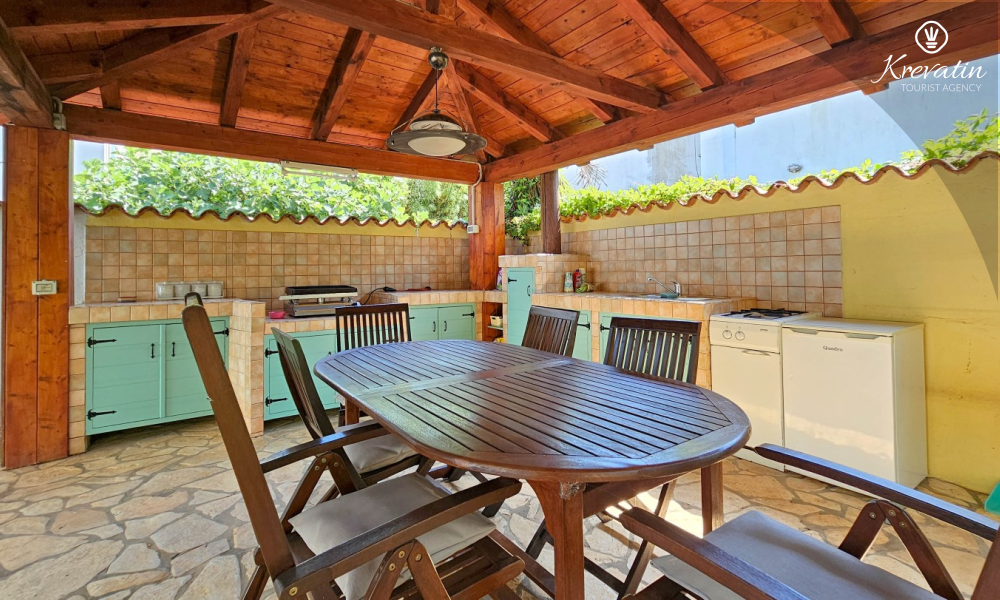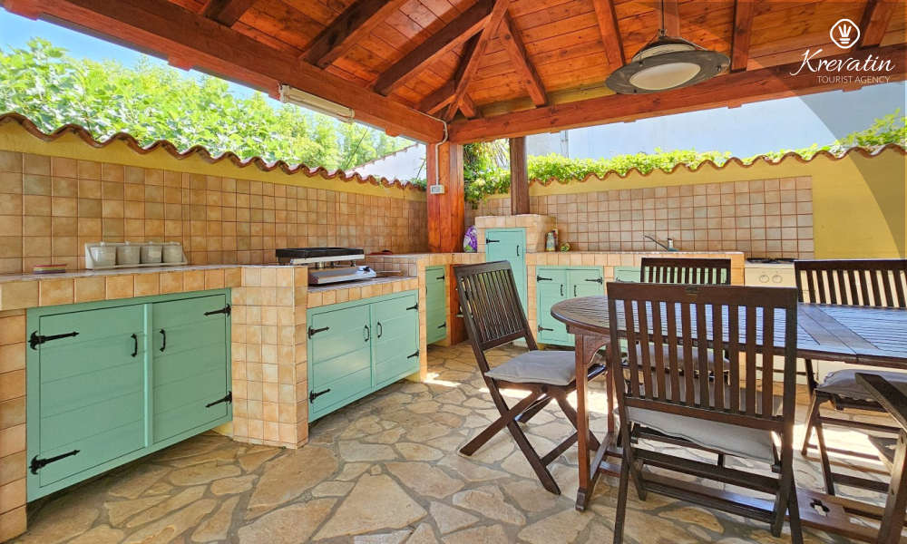 There is also a shared swimming pool, ideal for refreshment and relaxation, as well as a covered terrace with a barbecue, where you can prepare delicious meals and enjoy the benefits of the Mediterranean climate.