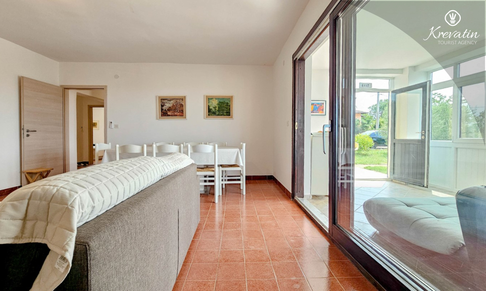 Located in a quiet part of Novigrad, surrounded by greenery and silence, this spacious ground floor apartment offers the perfect combination of comfort and natural ambiance - ideal for families, groups of friends and cycling enthusiasts. It is only 2.5 km away from the old town, picturesque beaches and the picturesque seaside promenade.