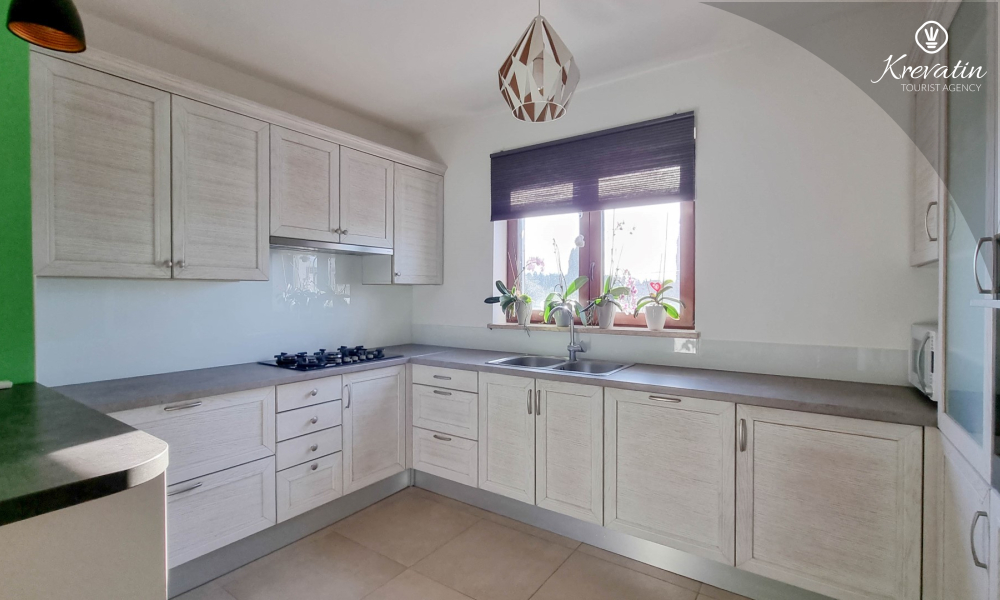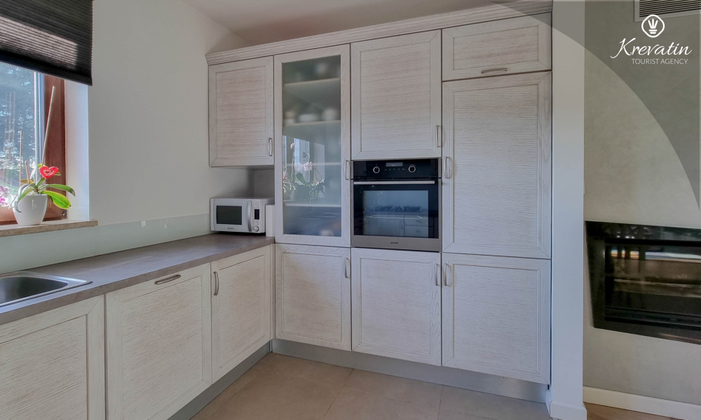 On the first floor there is a modern kitchen with a dining room - fully equipped with all the necessary things, a spacious living room, one bedroom with a double bed and a bathroom. There is also a balcony, perfect for outdoor gatherings.