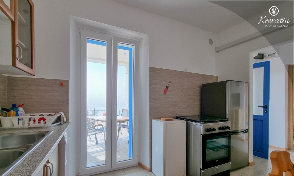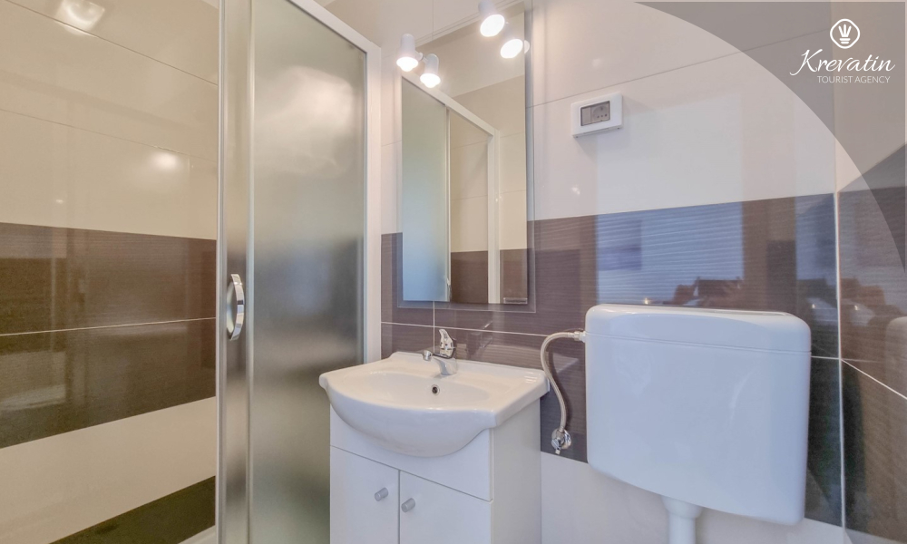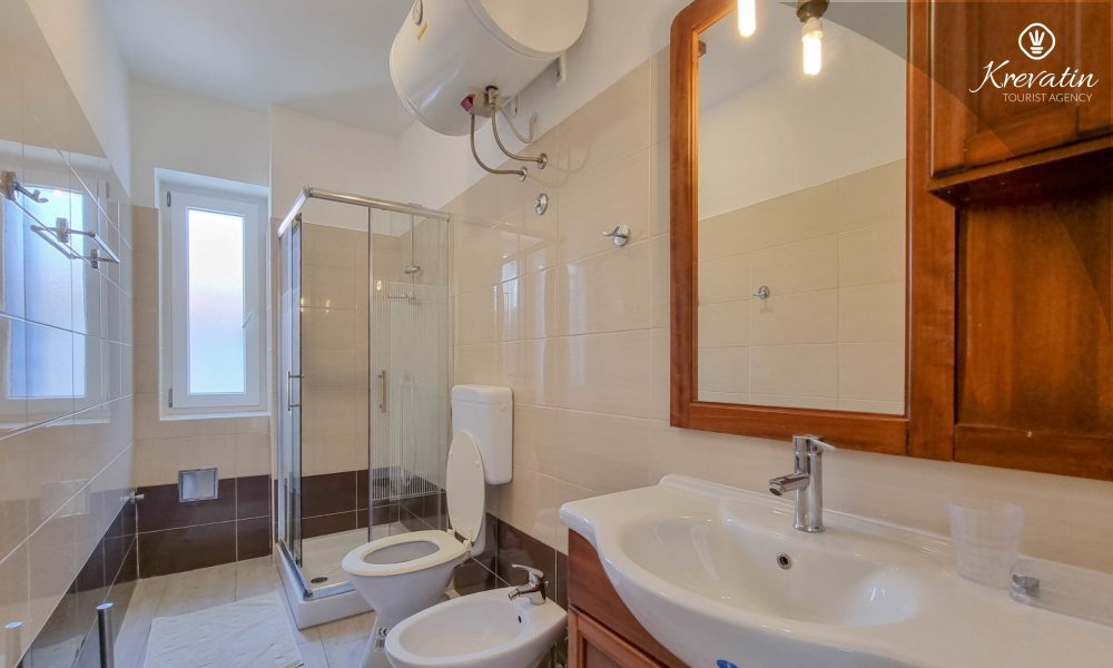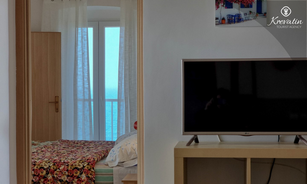 The apartment has two bathrooms, each with a shower and toilet, which further facilitates the stay for all guests. There is a balcony with a beautiful sea view, ideal for relaxing and enjoying the outdoors.
