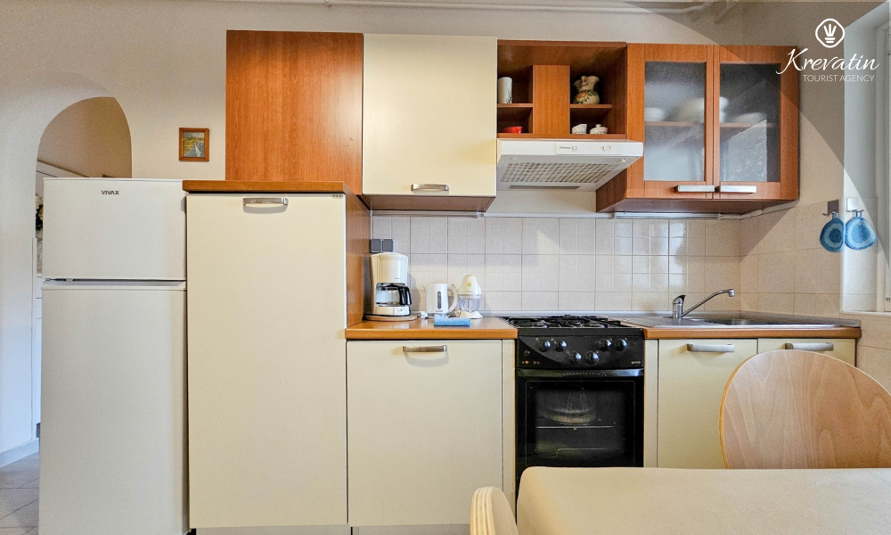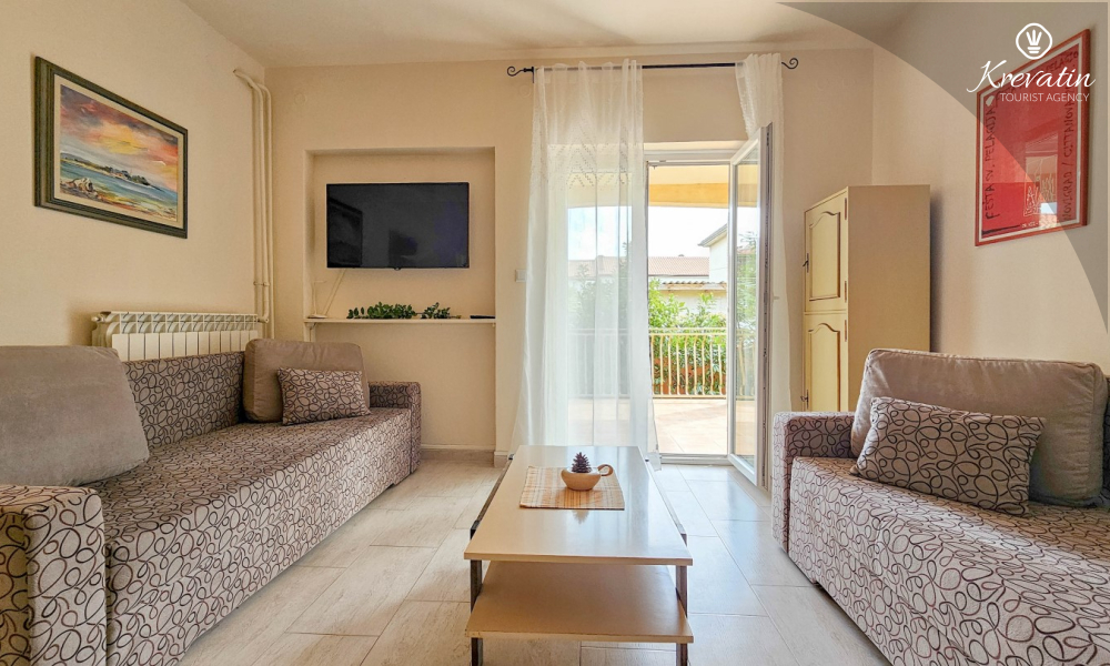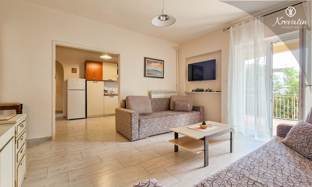 The apartment consists of one bedroom with a double bed, a living room with two sofa beds and a functional kitchen equipped with the basics. There is also a bathroom with shower and toilet, and a covered terrace with garden furniture - ideal for morning coffee or relaxed evenings.