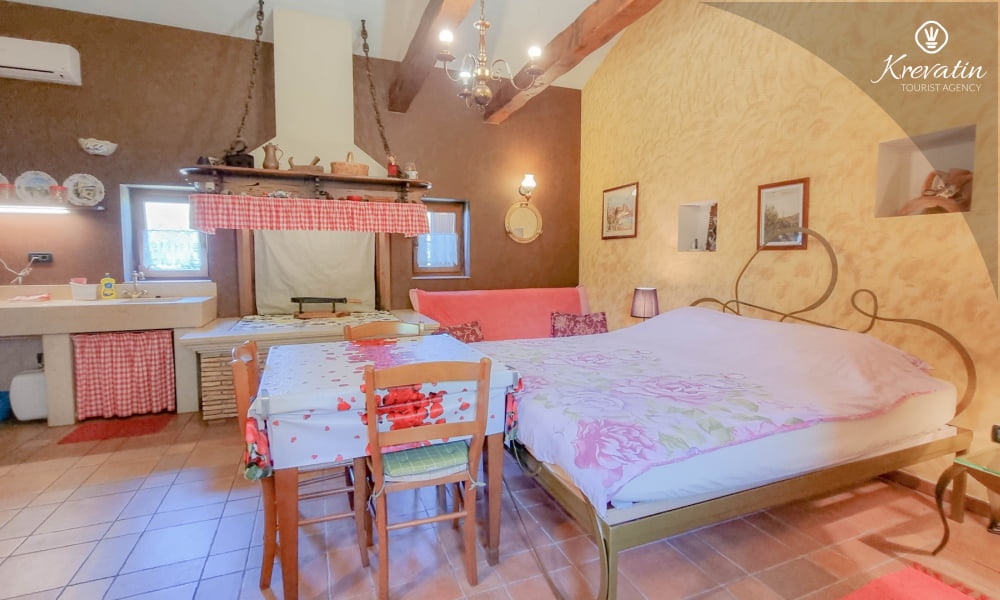 It is located on the ground floor and offers everything you need for a comfortable stay - a bedroom connected to a kitchen - equipped with basic amenities, a bathroom with shower and toilet, and a spacious terrace with a table and chairs, perfect for morning coffee or outdoor dinner.