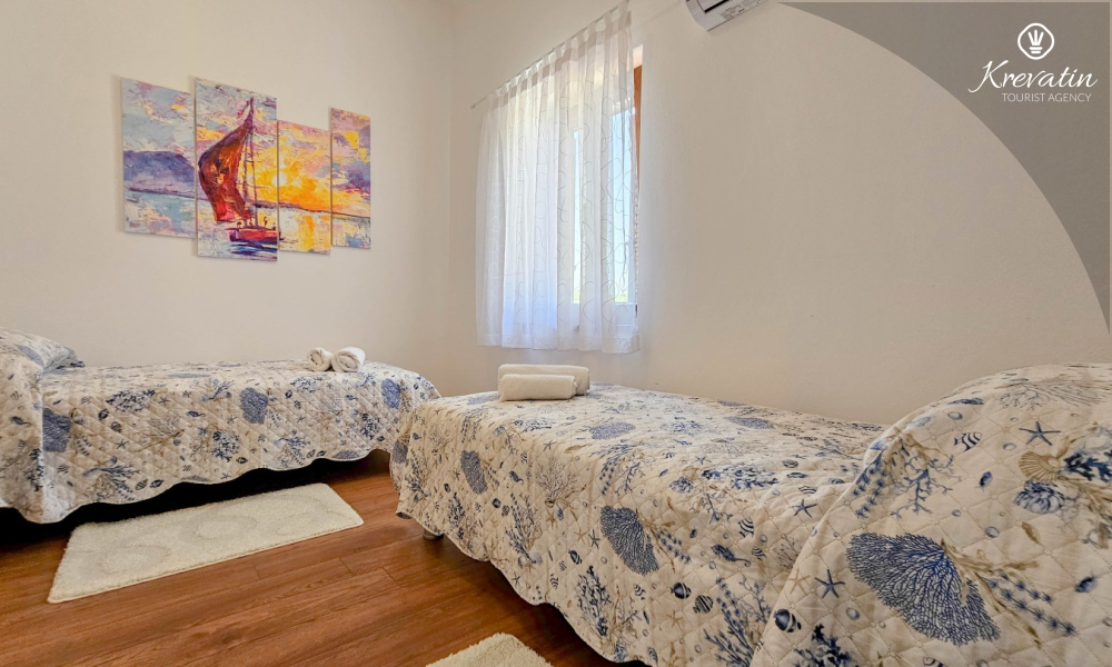 The villa has 2 comfortable bedrooms, which allows you to sleep peacefully and renew your energy. There is also a practical bathroom with a shower. A hairdryer and an iron are also available. The courtyard of the villa offers 4 comfortable sunbeds, where you can relax reading a book or sunbathe while enjoying the warm Istrian sun.