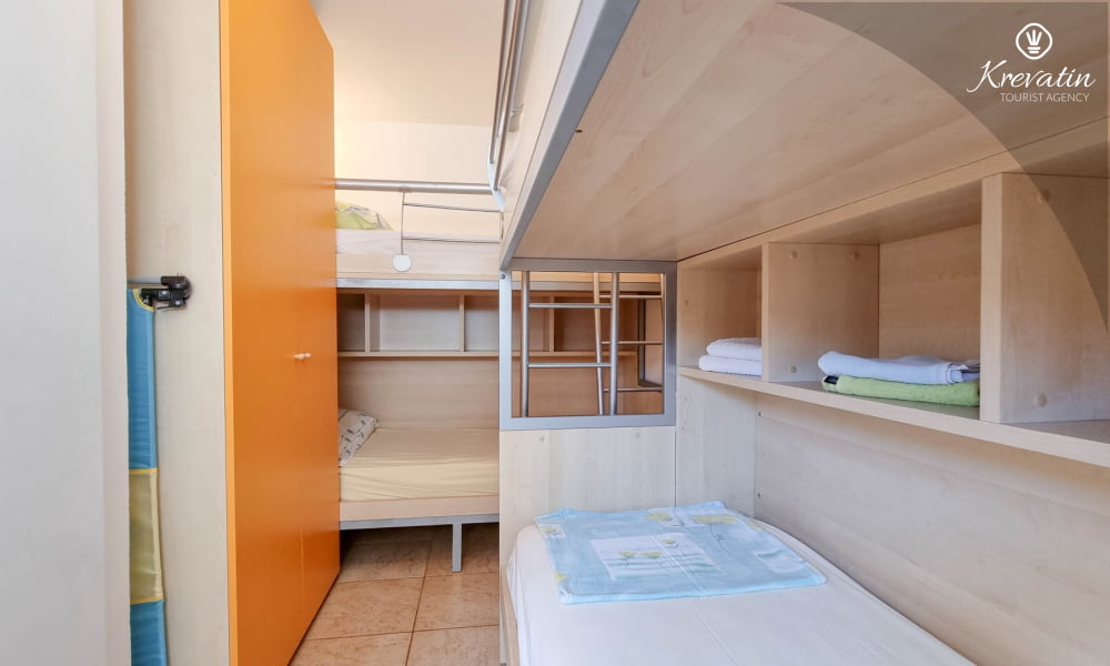 This lovely holiday house for up to 6 persons is situated on two floors: on the ground floor there is a large living room, a kitchen with dining room, one bedroom with two bunk beds and a bathroom. One double bedroom is situated on the first floor with access to the balcony. The kitchen is equipped with electric stove, oven, refrigerator, microwave and coffee maker. There is a nice garden, a terrace with barbecue and a nice balcony. SAT-TV and bed linen are included in the price, pets are welcome on charge.