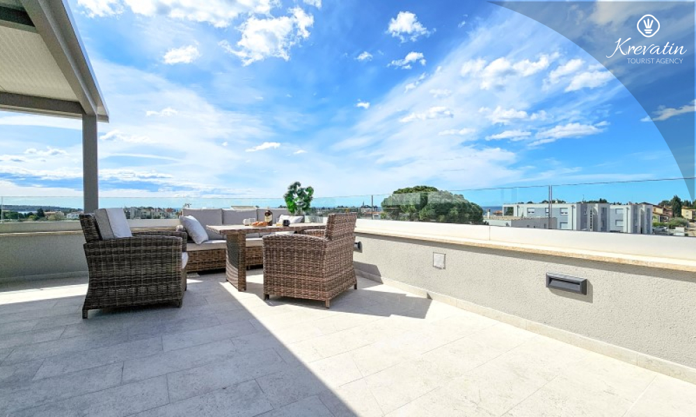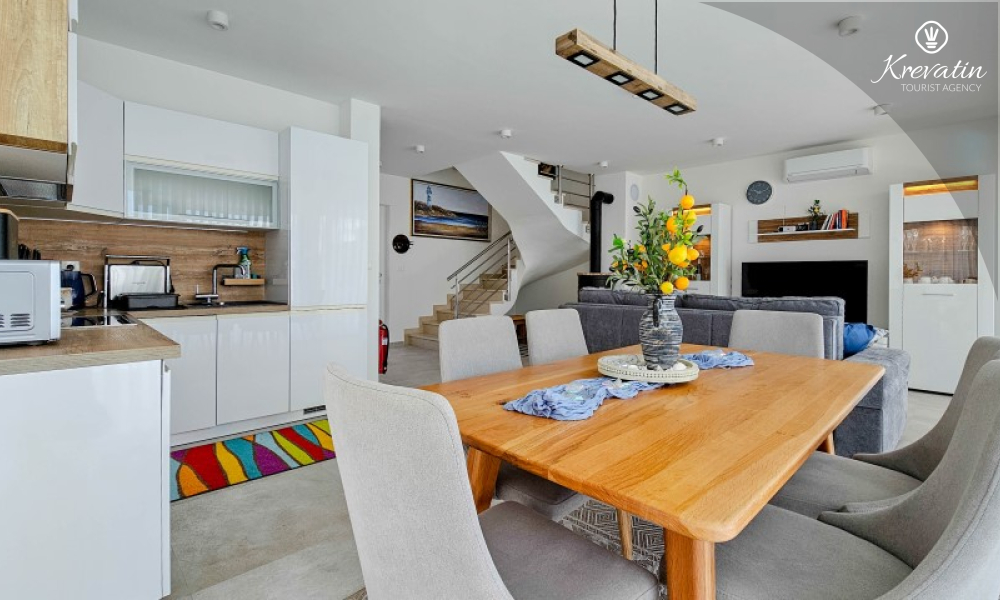 This modern three-storey terraced house is located in a quiet part of Novigrad – close enough to the center and the sea, and is ideal for 4 to 6 people.