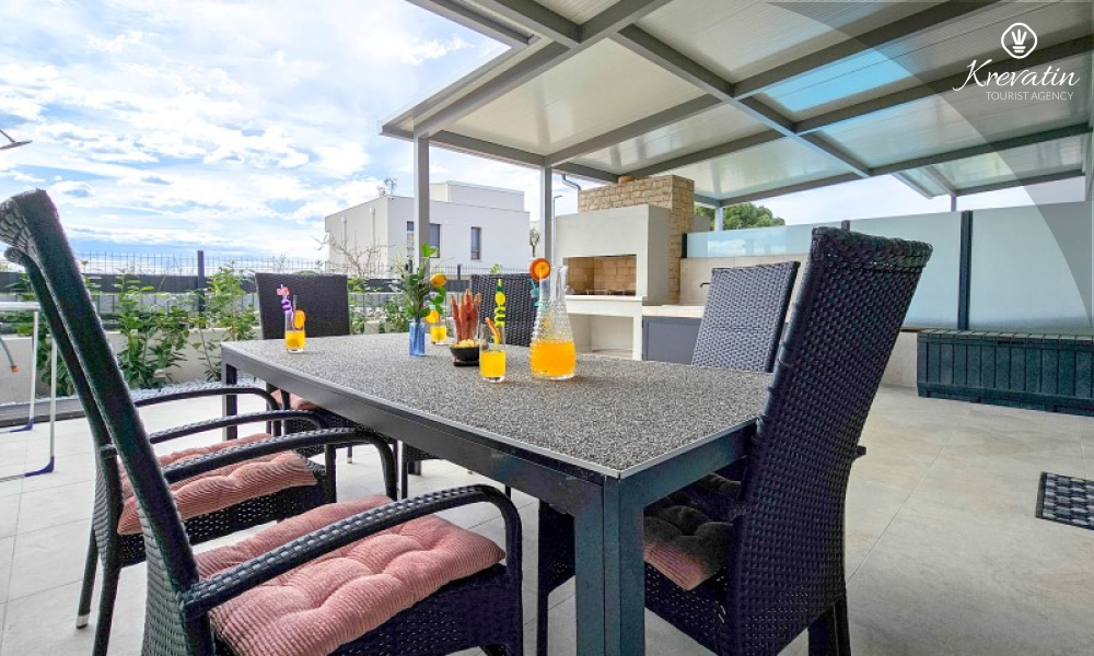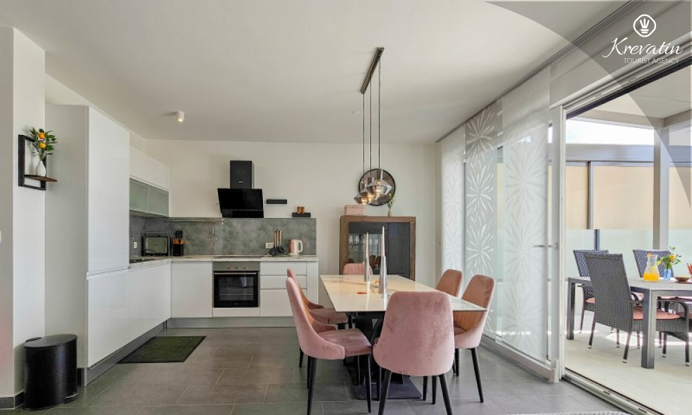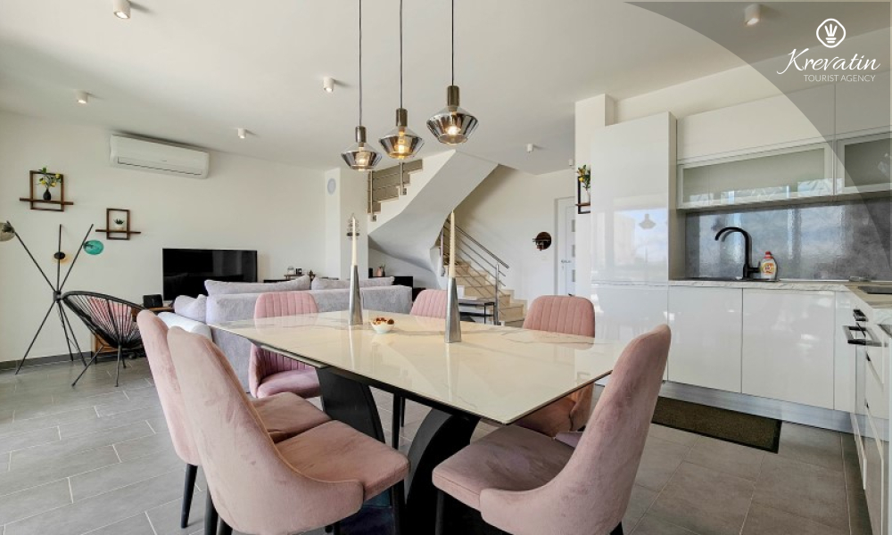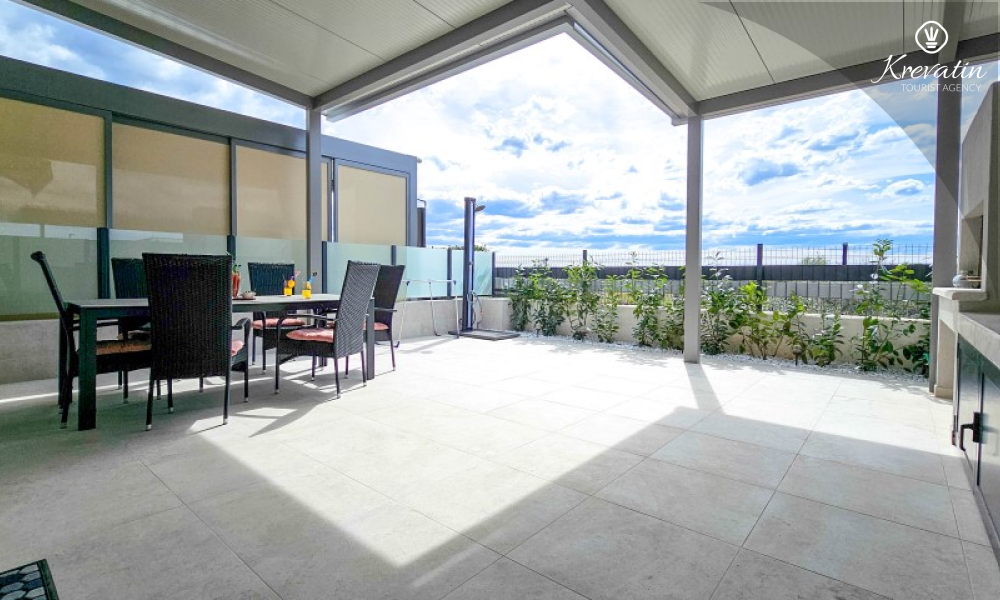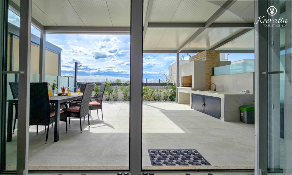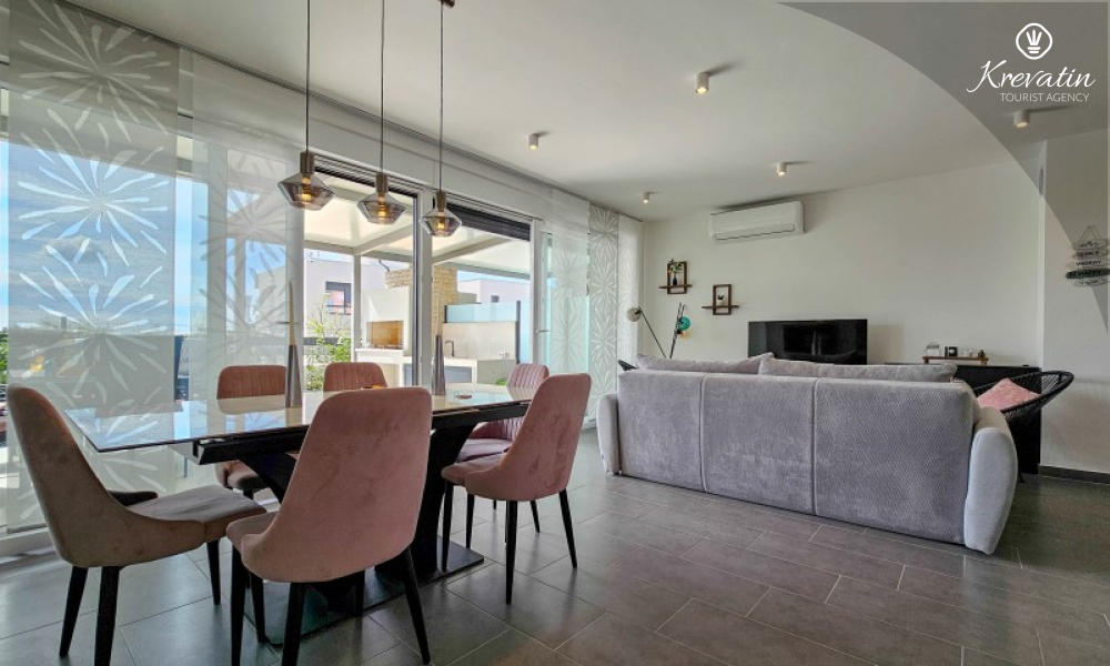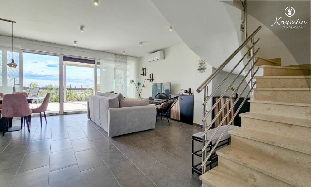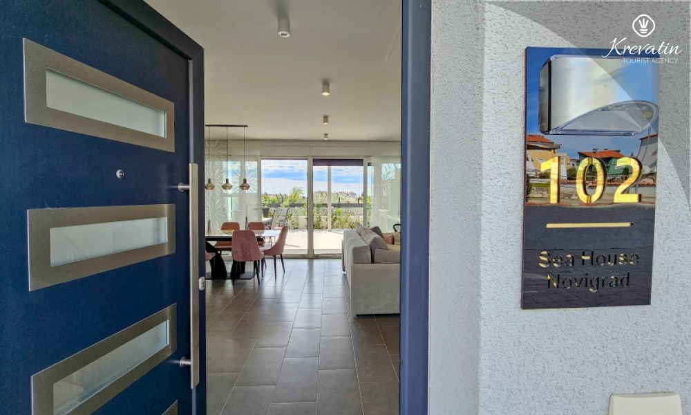 This modern three-storey terraced house is located in a quiet part of Novigrad – close enough to the centre and the sea, and is ideal for 4 to 6 people.