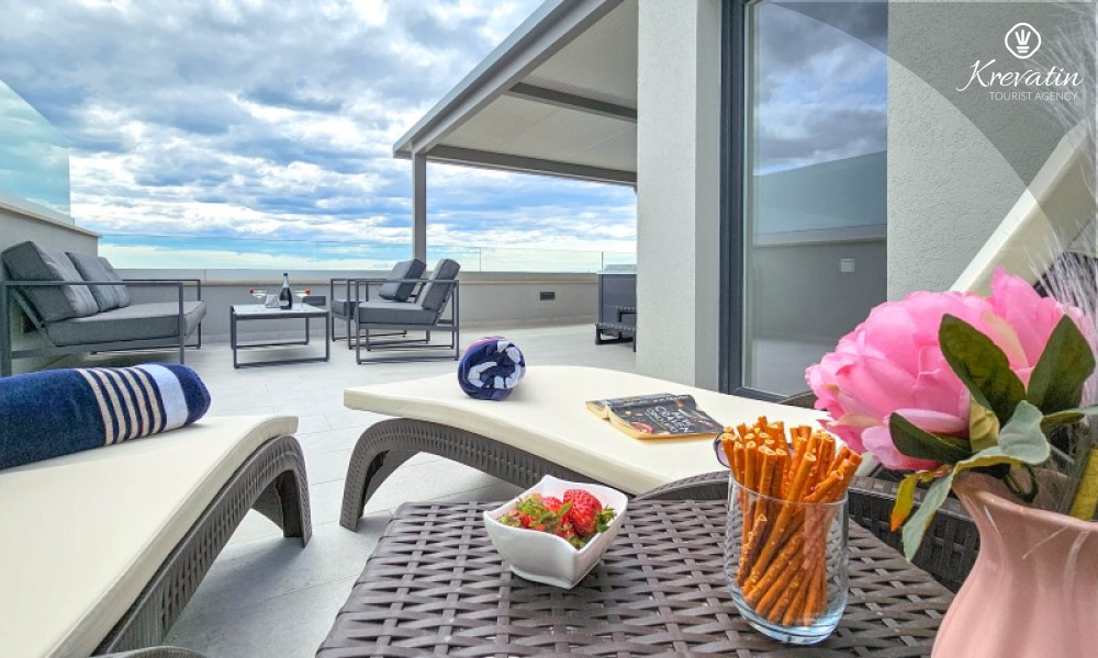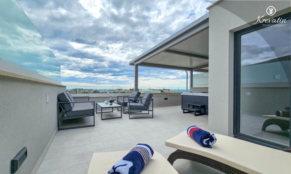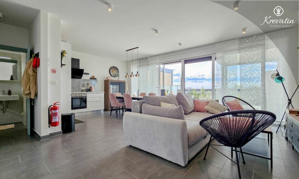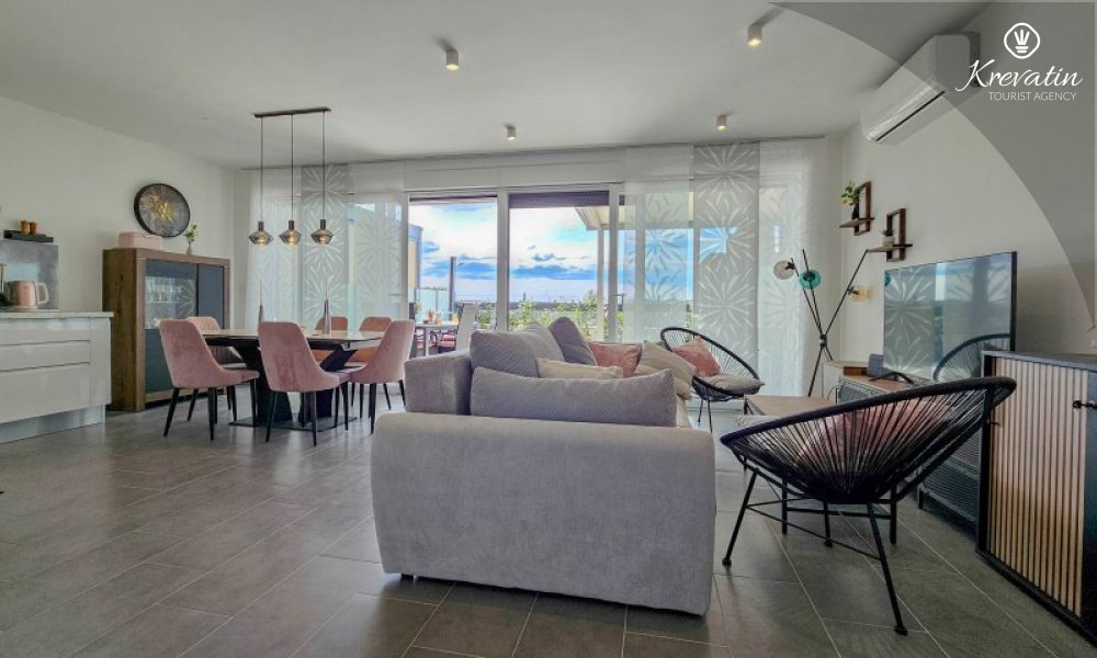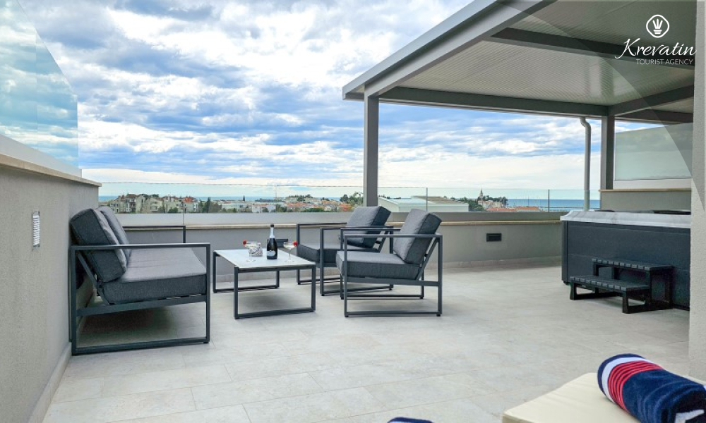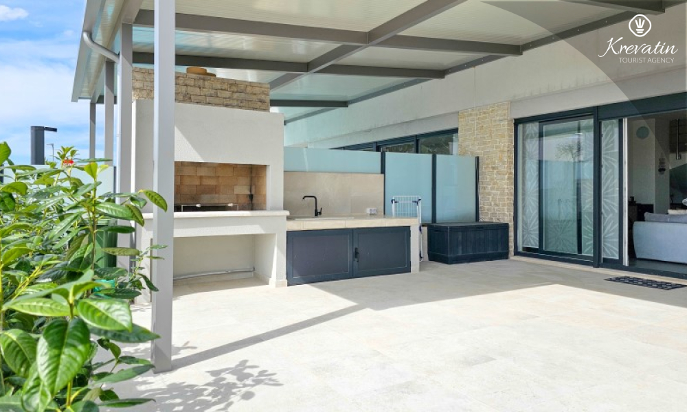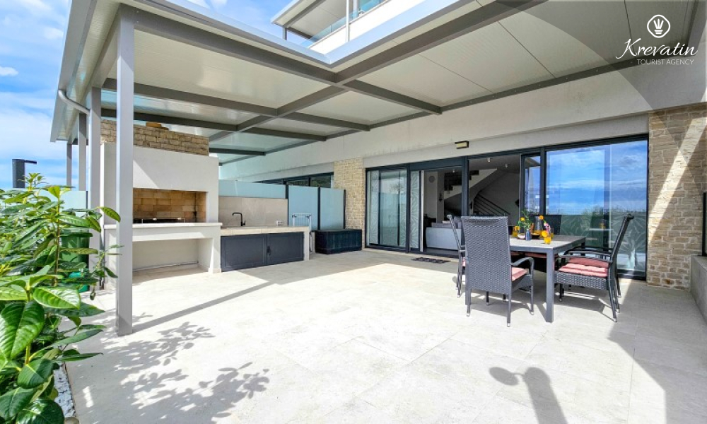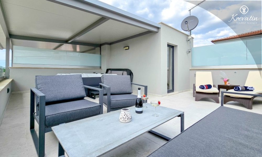 This modern three-storey terraced house is located in a quiet part of Novigrad – close enough to the centre and the sea, and is ideal for 4 to 6 people.
