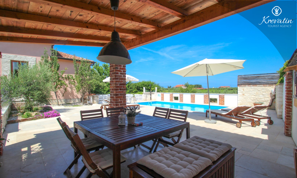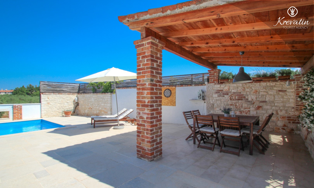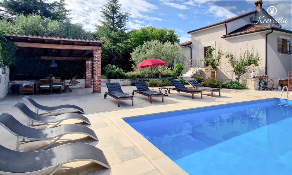 The villa is spread over two floors and offers four comfortable bedrooms, a modernly equipped kitchen and two bathrooms - ideal for larger families or friends. There is a spacious covered terrace with barbecue and a private swimming pool surrounded by greenery.